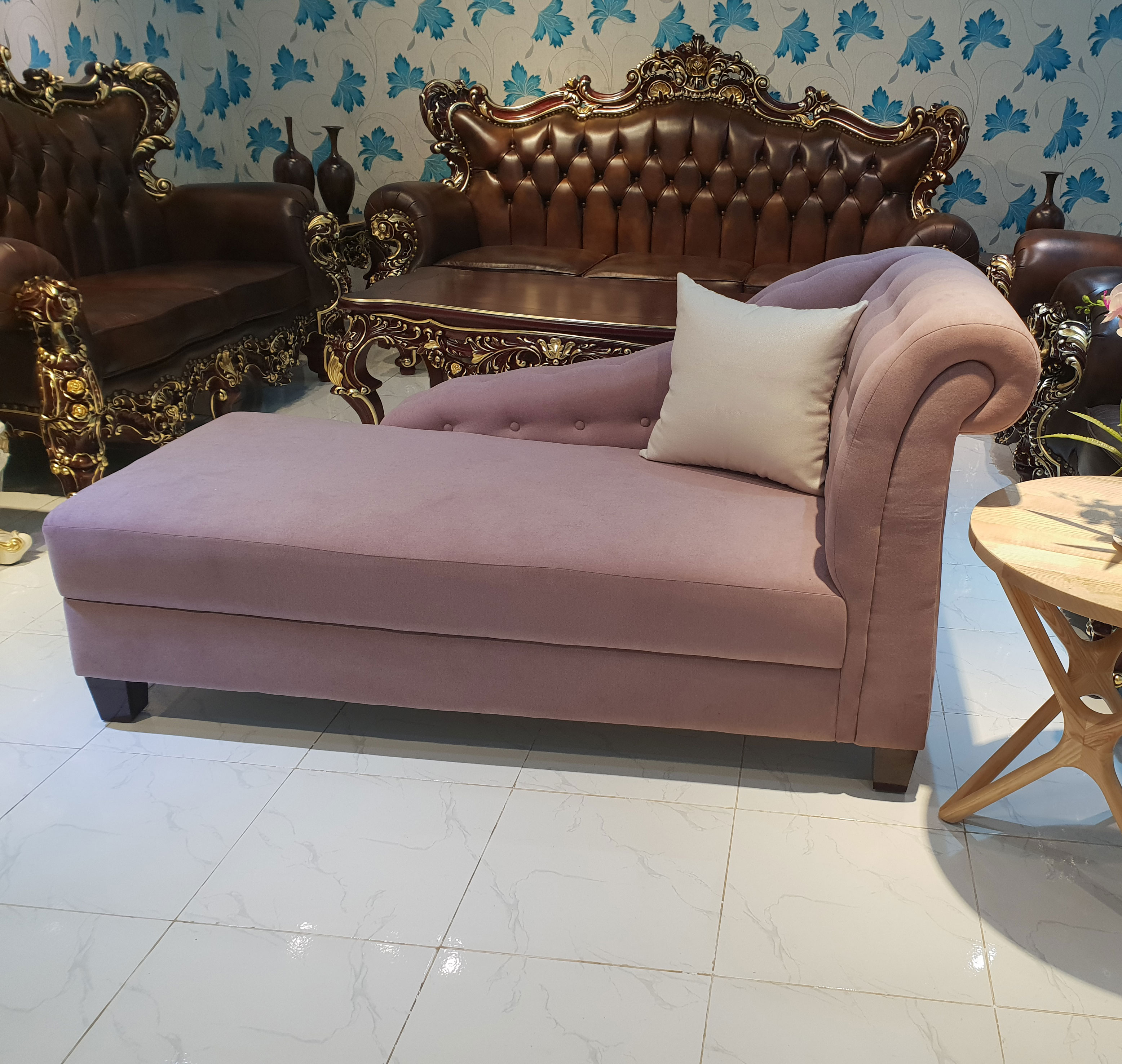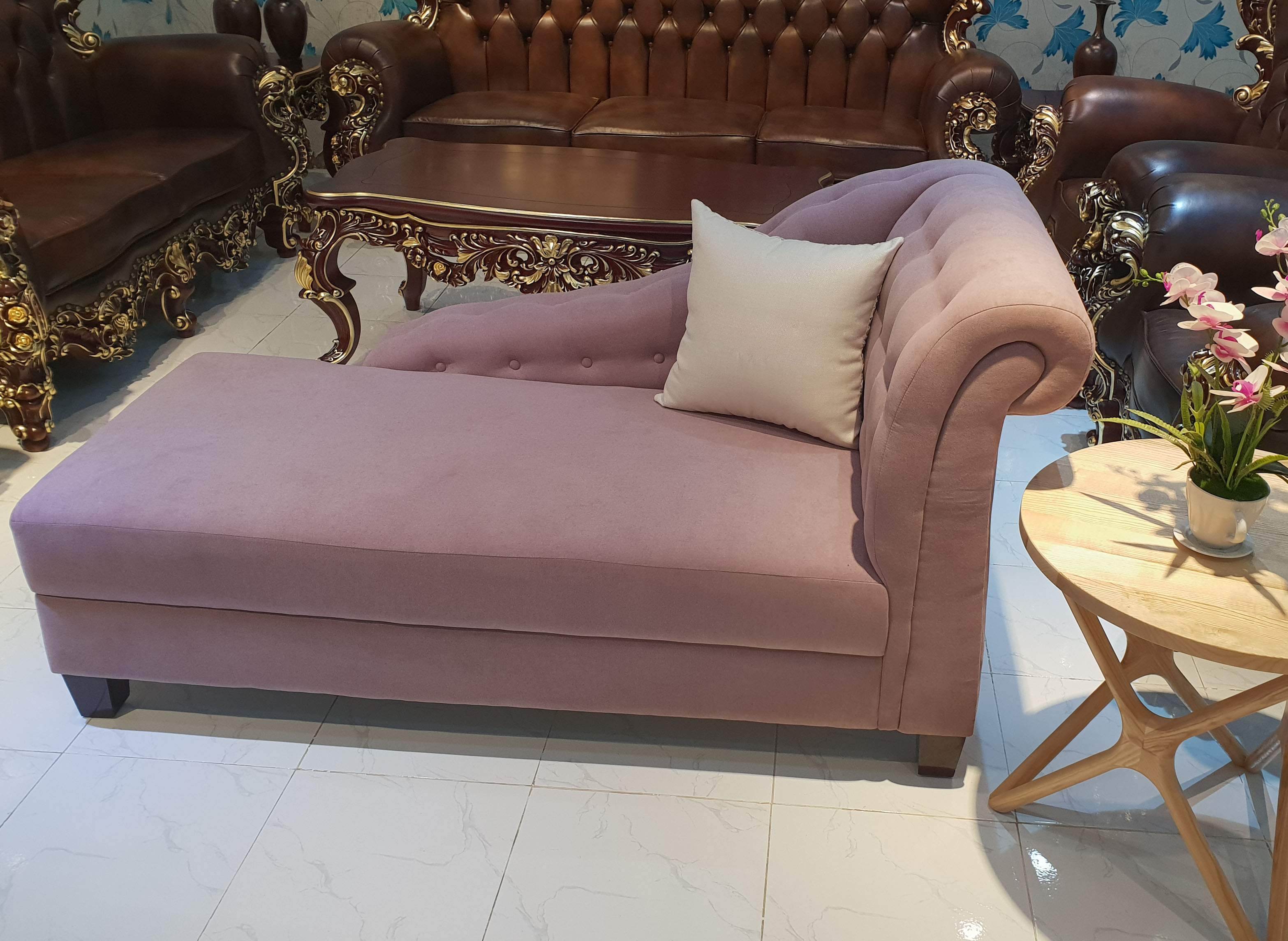 Bộ sofa phong cách tân cổ điển - 01 Ghế văng kích thước 2,4m - 01 Ghế đơn 80cm - 01 Đôn Thông minh kích thước 60x80cm - Bàn trà gỗ sồi kích thước 60x120x35cm