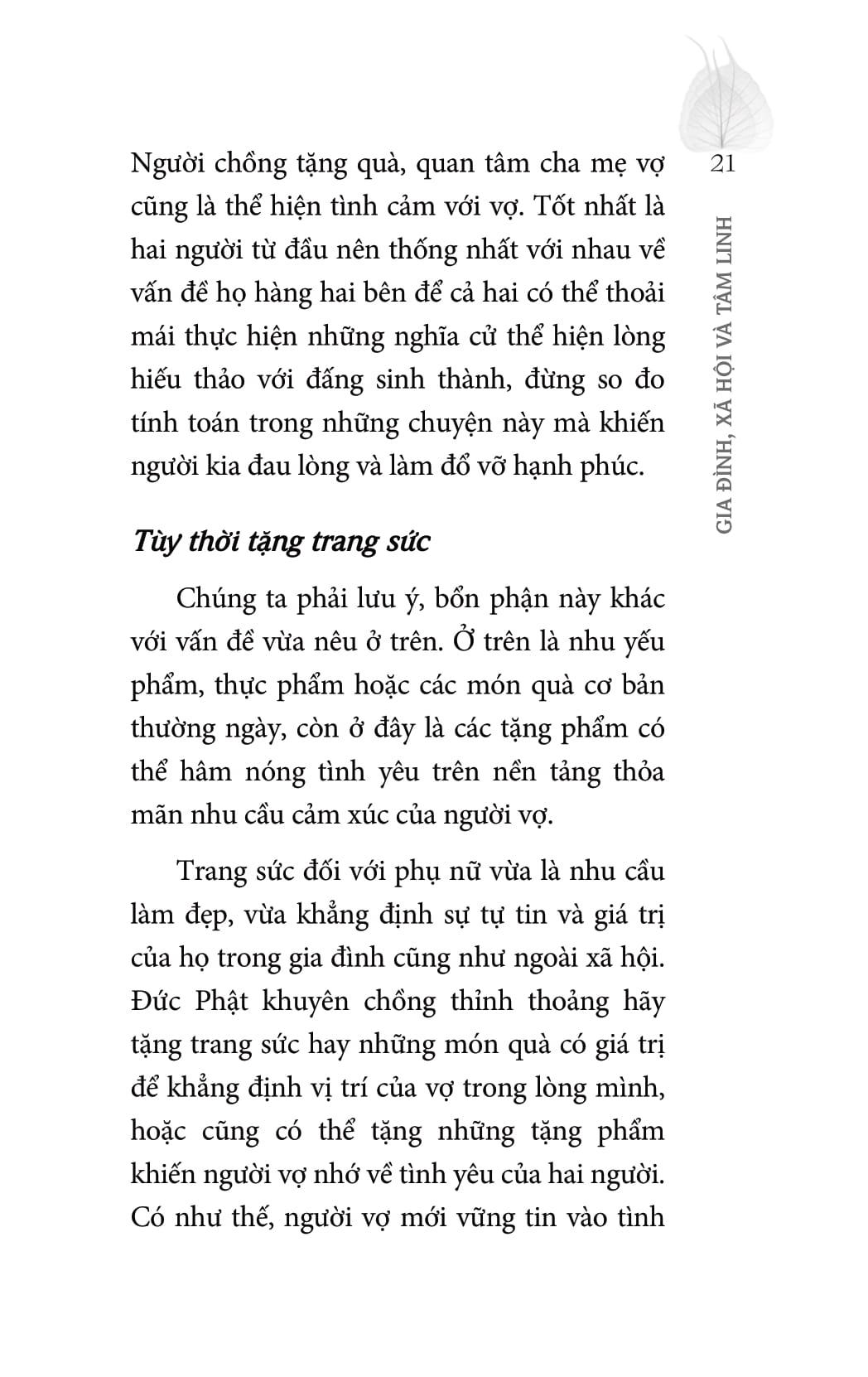 Thông qua Gia đình, xã hội và tâm linh, tôi hy vọng quý độc giả, quý Phật tử sẽ có thể rút ra được những bài học cho bản thân m.ình trong mối quan hệ gia đình, xã hội và tâm linh. Từ nền tảng đó, chúng ta hoàn toàn có thể điều chỉnh hành vi của m.ình nhằm thắt chặt tình cảm giữa m.ình với những người xung quanh. Làm được như thế có nghĩa chúng ta đã biết cách chuyển hóa, mà chuyển hóa chính là tu, là tìm thấy con đường đi đến bình an, hạnh phúc.