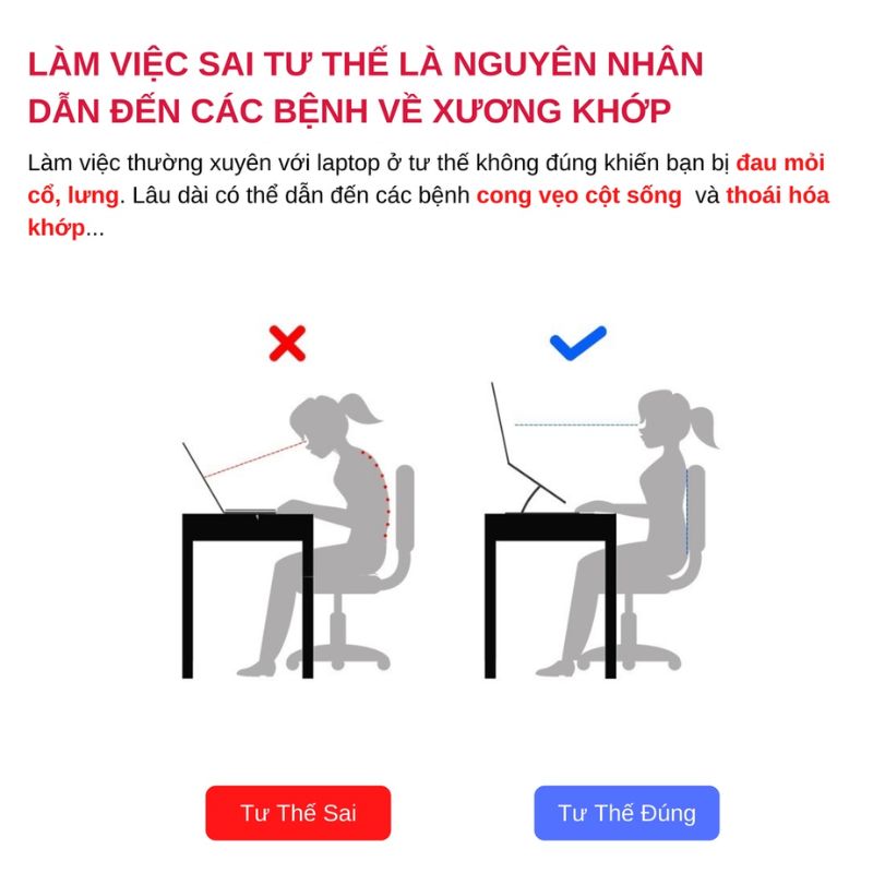 Làm việc với máy tính thời gian dài sai tư thế, cúi đầu trong thời gian dài có thể gây nguy hại cho cột sống của bạn và làm tăng tốc độ thoái hóa cột sống. Thói quen dùng