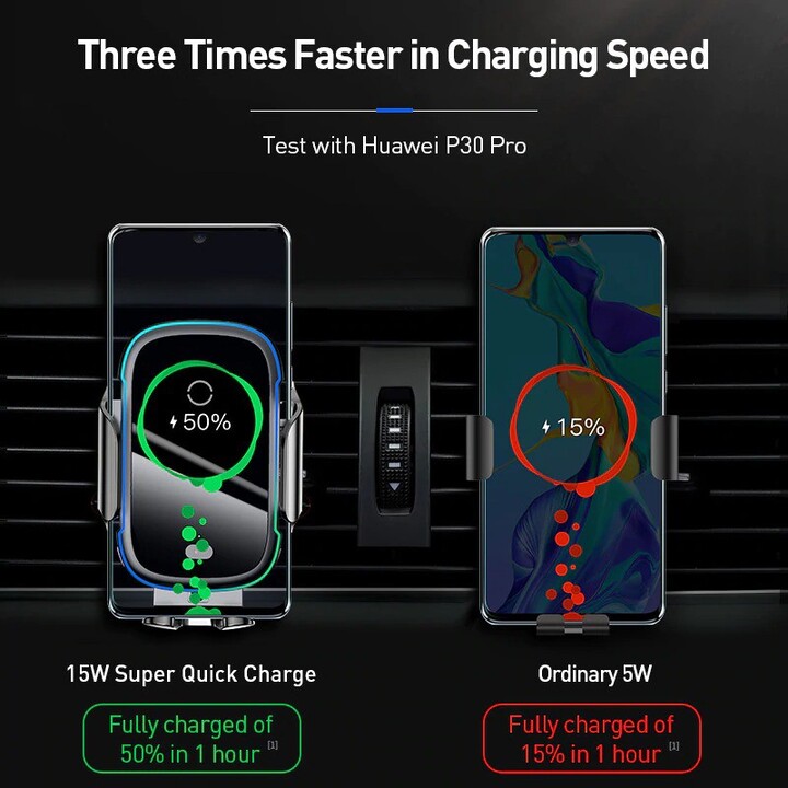 ✨Giá đỡ điện thoại kiêm sạc không dây gắp taplo, cửa gió điều hòa ô tô hãng Baseus WXHW03 - Công suất đầu ra: 15W (Max) - Hàng Nhập Khẩu