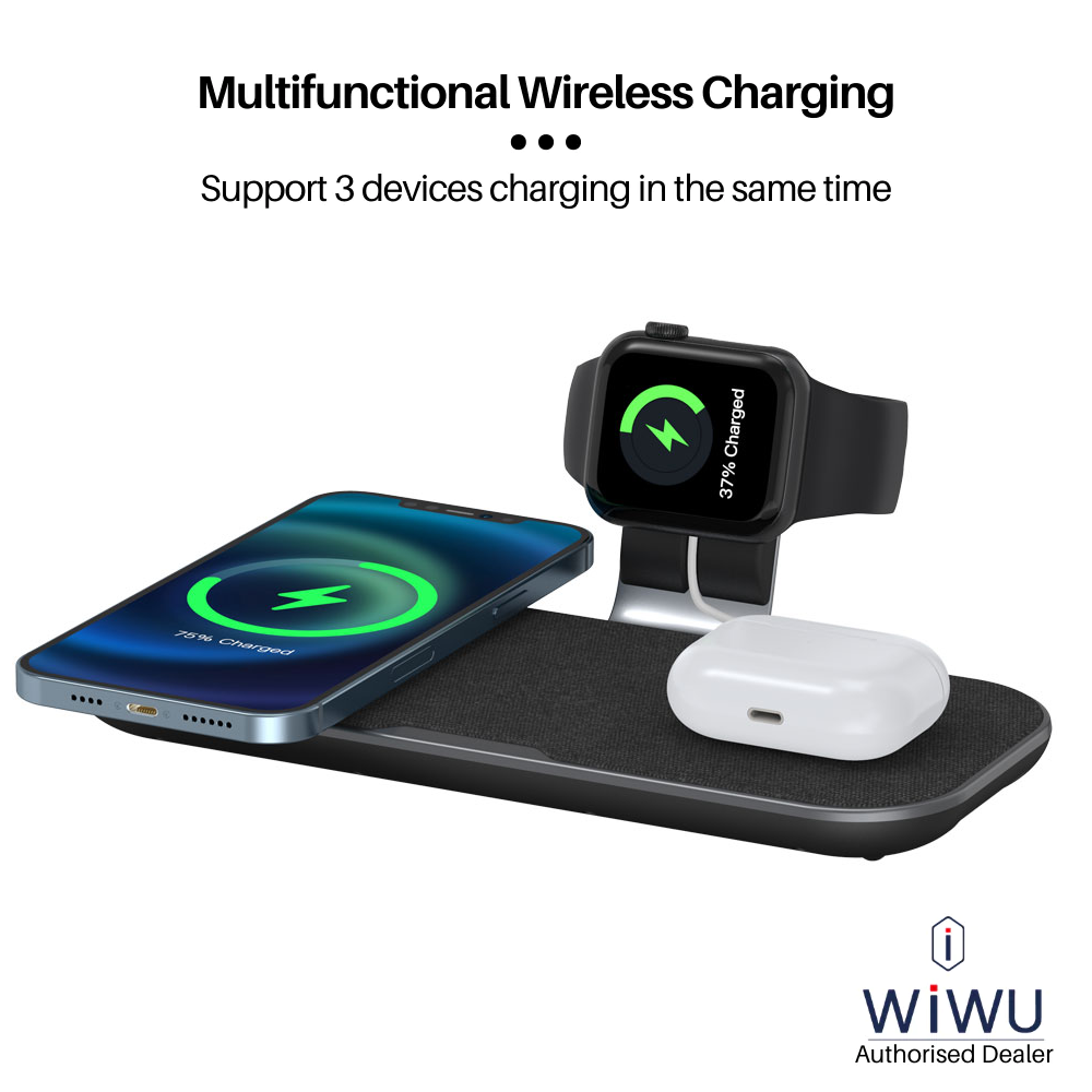 Dock Sạc Cao Cấp Không Dây WIWU Triple 3in1 W001 - Sạc Nhanh, Tiện Lợi, Sang Trọng Sạc không dây 3 trong 1, gấp gọn tiện lợi: WIWU Triple 3in1 W001 là giải pháp sạc