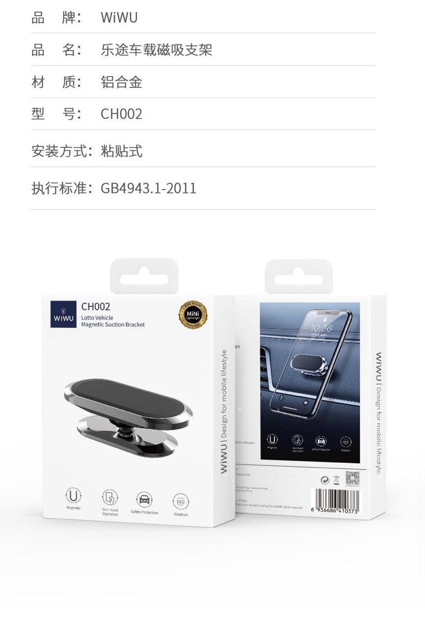 Giá đỡ điện thoại Wiwu CH002 Car Mount Thương hiệu: Wiwu Chất liệu: Hợp kim nhôm Màu sắc: đen Tương thích với Iphone Thân ngoài được làm bằng vật liệu hợp kim nhôm có độ