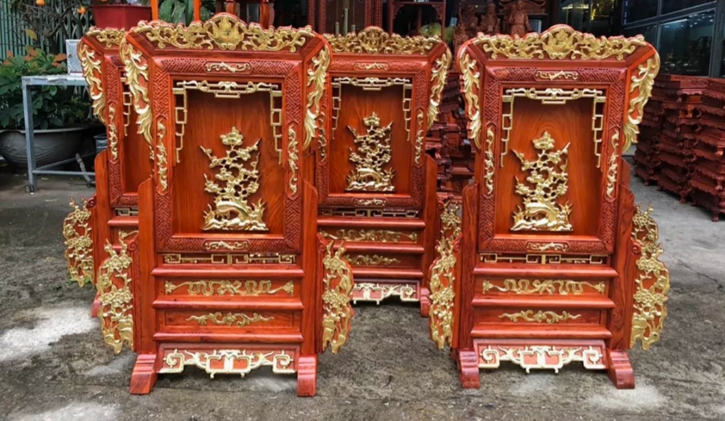 Khám thờ gia tiên gỗ gụ sơn son thiếp vàng cao cấp
