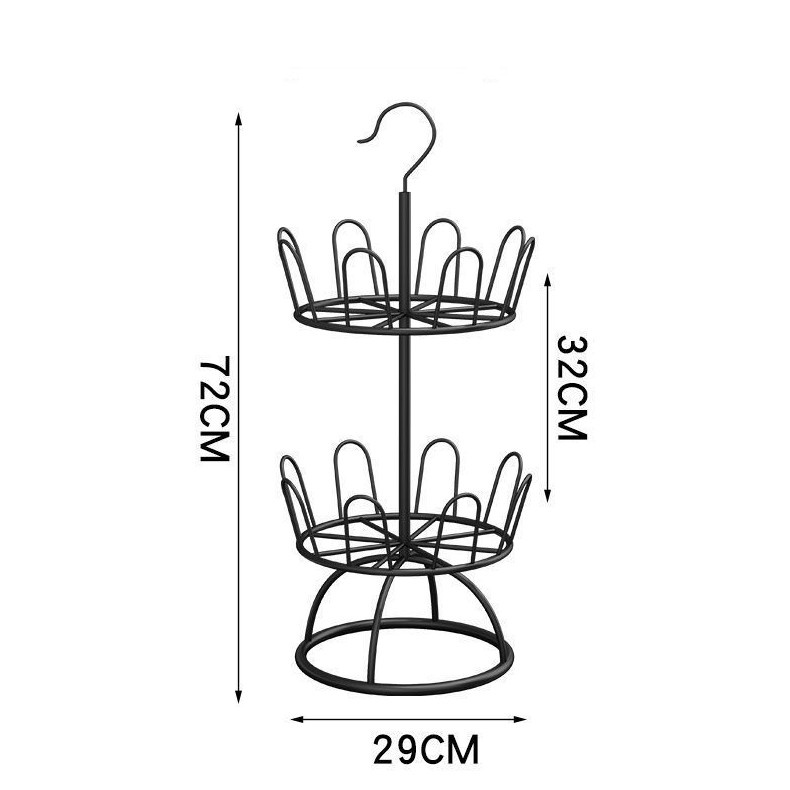 Cây phơi giày dép 3 tầng xoay 360 độ, Kệ phơi giầy dép có móc treo, khô nhanh, tiết kiệm