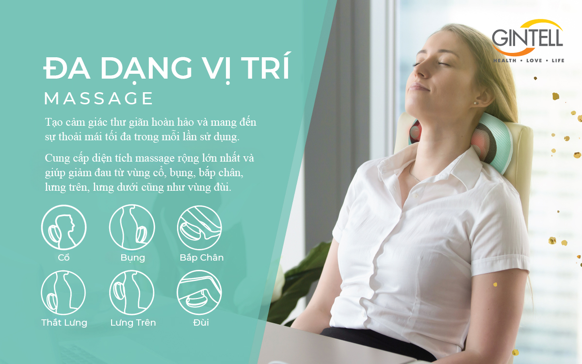 GỐI MASSAGE G-MINNIE CARE CHI TIẾT SẢN PHẨM - Tên sản phẩm: Gối Massage G-Minnie Care - Mã sản phẩm: GT120 - Thương hiệu: GINTELL - Bảo hành: 12 tháng 1 đổi 1 trong 7