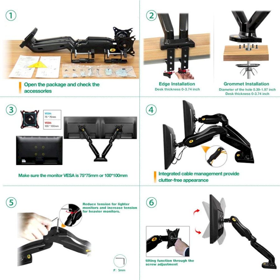 Hướng dẫn lắp đặt NB F160 - chân treo hai màn hình vi tính đa năng North Bayou