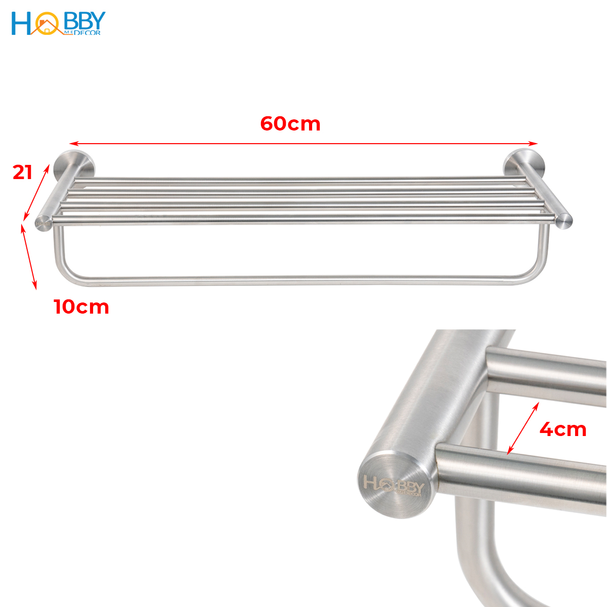 Giá treo khăn tắm quần áo đa năng inox 304 Hobby home decor GT4T Thông tin kỹ thuật - Chất liệu: Inox 304 xước không rỉ sét - Phù hợp để khăn tắm quần áo