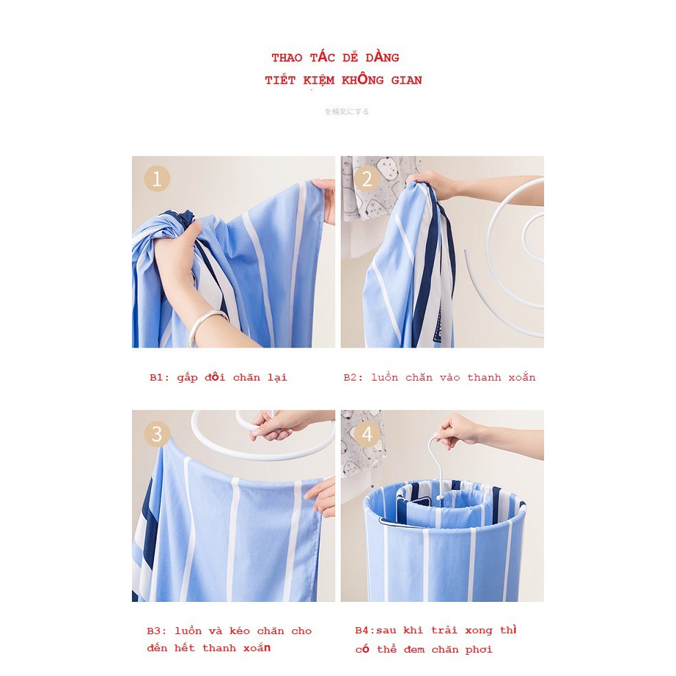 Giá treo với thiết kế bằng chất liệu mangan chắc chắn với đường kính lên tới 42cm có thể lòng bộ màng vào một cách thoải mái. Với cách phơi đồ như vậy có thể giảm thiểu thời gian cũng như diện tích phơi một cách hiệu quả.