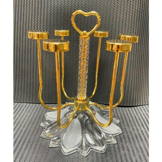 ✨Giá úp ly cốc Inox mạ vàng đế thủy tinh vàng