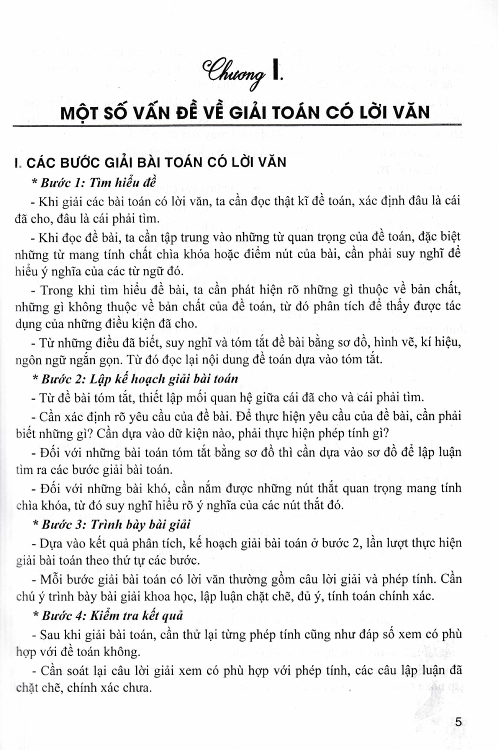 Mua tại TiktokGiải Toán Có Lời Văn 5 (Dùng Chung Cho Các Bộ SGK Hiện Hành) Toán có lời văn là các bài toán gắn với thực tế cuộc sống hàng ngày. Giải các bài toán có lời văn là việc học sinh vận dụng các kiến thức đã được học vào để giải quyết các tình huống gắn với thực tế. Thông qua các bài toán có lời văn, giáo viên sẽ giúp học sinh rèn luyện kĩ năng sống một cách hiệu quả nhất. Cuốn “Giải toán có lời văn 5" được biên soạn nhằm giúp các em học sinh lớp 5 rèn luyện và phát triển kĩ năng giải các bài toán có lời văn. Cuốn sách cũng là một tài liệu tham khảo thiết thực cho các thầy cô giáo trong quá trình giảng dạy nhằm phát triển năng lực học toán cho học sinh. Cuốn sách được viết dựa theo chương trình nội dung sách giáo khoa Toán 5 - Chương trình giáo dục phổ thông 2018 gồm các chủ đề sau: Chương 1: Một số vấn đề về giải toán có lời văn. Chương II: Một số bài toán có lời văn gắn với phân số. Chương III: Một số bài toán có lời văn về tỉ số phần trăm. Chương IV: Một số bài toán có văn về chuyển động đều. Trong mỗi chương, các em học sinh sẽ được ôn tập và hệ thống lại các kiến thức cơ bản bằng các ví dụ đã được chọn lọc một cách phù hợp và dễ hiểu nhất. Từ lí thuyết cơ bản, các em sẽ được làm quen với các dạng bài tập, đó là các dạng bài thường hay xuất hiện trong các kì giao lưu toán tuổi thơ các cấp và các để thi tuyển chọn vào các Lớp 6 trường chuyên. Mỗi dạng bài đều có các ví dụ minh hoạ các cách giải cụ thể, tường minh giúp các em nắm chắc được cách giải từ đó áp dụng để giải các bài luyện tập. Trong phần hướng dẫn, chúng tôi có đưa ra cách giải chi tiết các bài luyện tập để học sinh, các thầy cô và các bậc phụ huynh tham khảo. Hi vọng cuốn sách sẽ đáp ứng được nhu cầu phát triển năng lực cho học sinh lớp 5 trong giải toán có lời văn. Hãy góp ý cho chúng tôi để nội dung cuốn sách ngày càng hoàn thiện hơn. Rất mong nhận được sự trao đổi của bạn đọc.