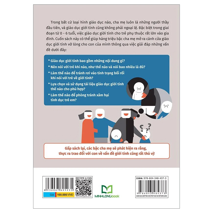 Mua tại TiktokGiáo dục giới tính không chỉ đơn thuần là dạy những kiến thức liên quan đến sinh lí, vệ sinh, cũng không chỉ là giáo dục kĩ năng phòng tránh xâm hại. Nền tảng tâm lí của việc giáo dục giới tính chính là tình yêu mà cha mẹ dành cho con mình, là tình yêu giữa cha mẹ với nhau, là tình yêu giữa bạn bè với bất cứ loại hình giáo dục nào, cha mẹ luôn là những người thầy đầu tiên và giáo dục giới tính cũng không phải là ngoại lệ. Đặc biệt, trong giai đoạn từ 0-6 tuổi, việc giáo dục giới tính cho trẻ phụ thuộc rất lớn vào gia đình. Cuốn sách này có thể giúp hàng triệu bậc cha mẹ mở ra cánh cửa giáo dục giới tính vỡ lòng cho con của mình .