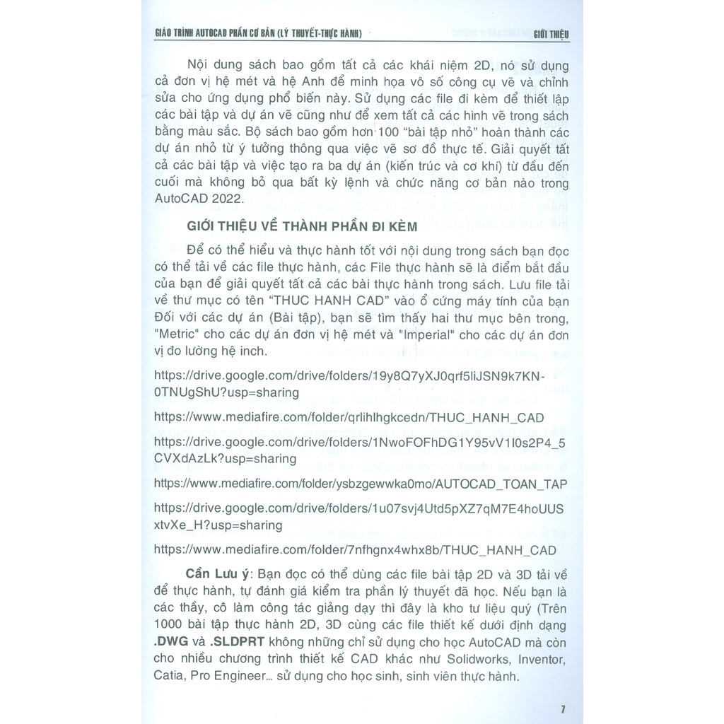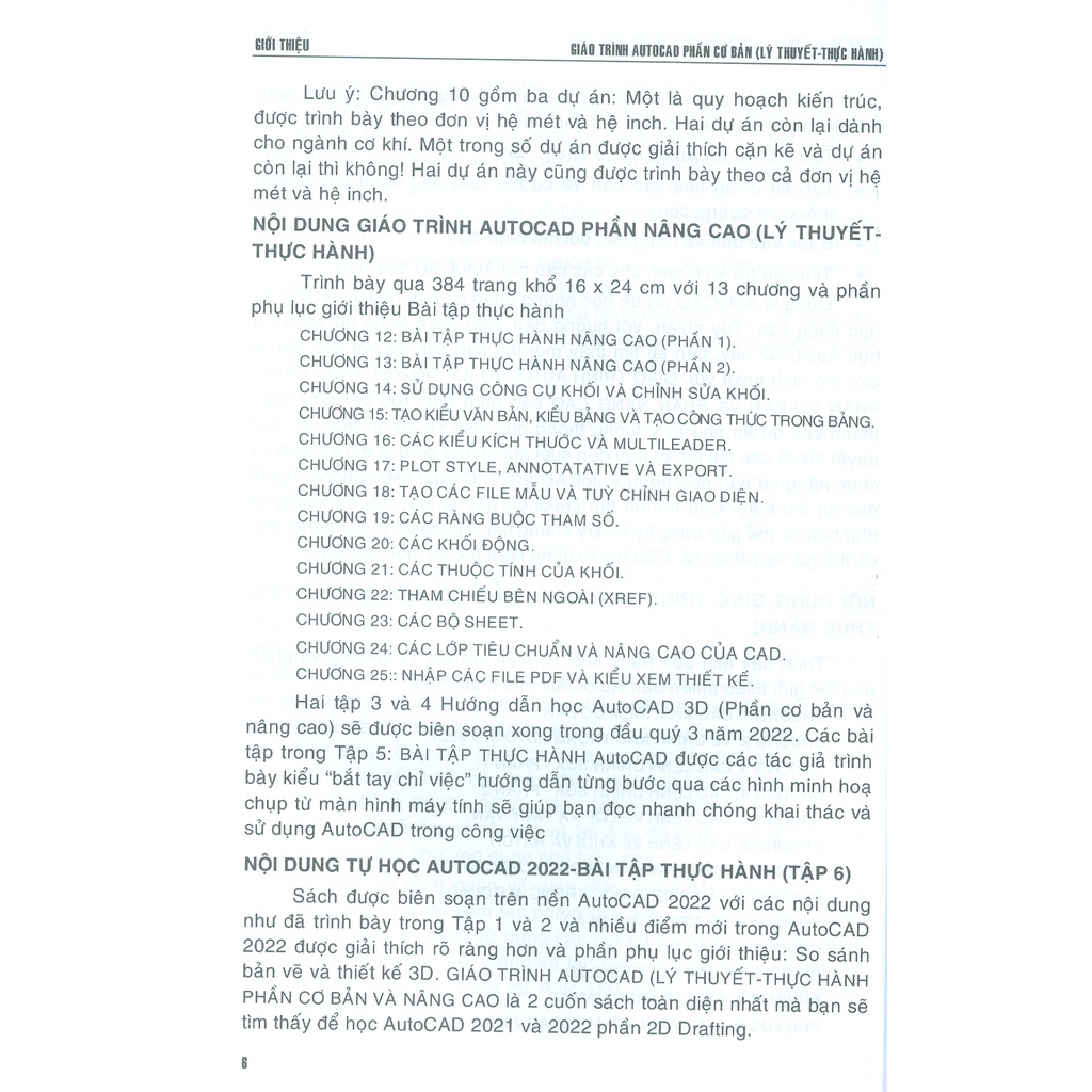 Sách trình bày qua 384 trang khổ 16 x 24 cm với 11 chương và phần phụ lục giới thiệu phiên bản AutoCAD mới nhất 2022