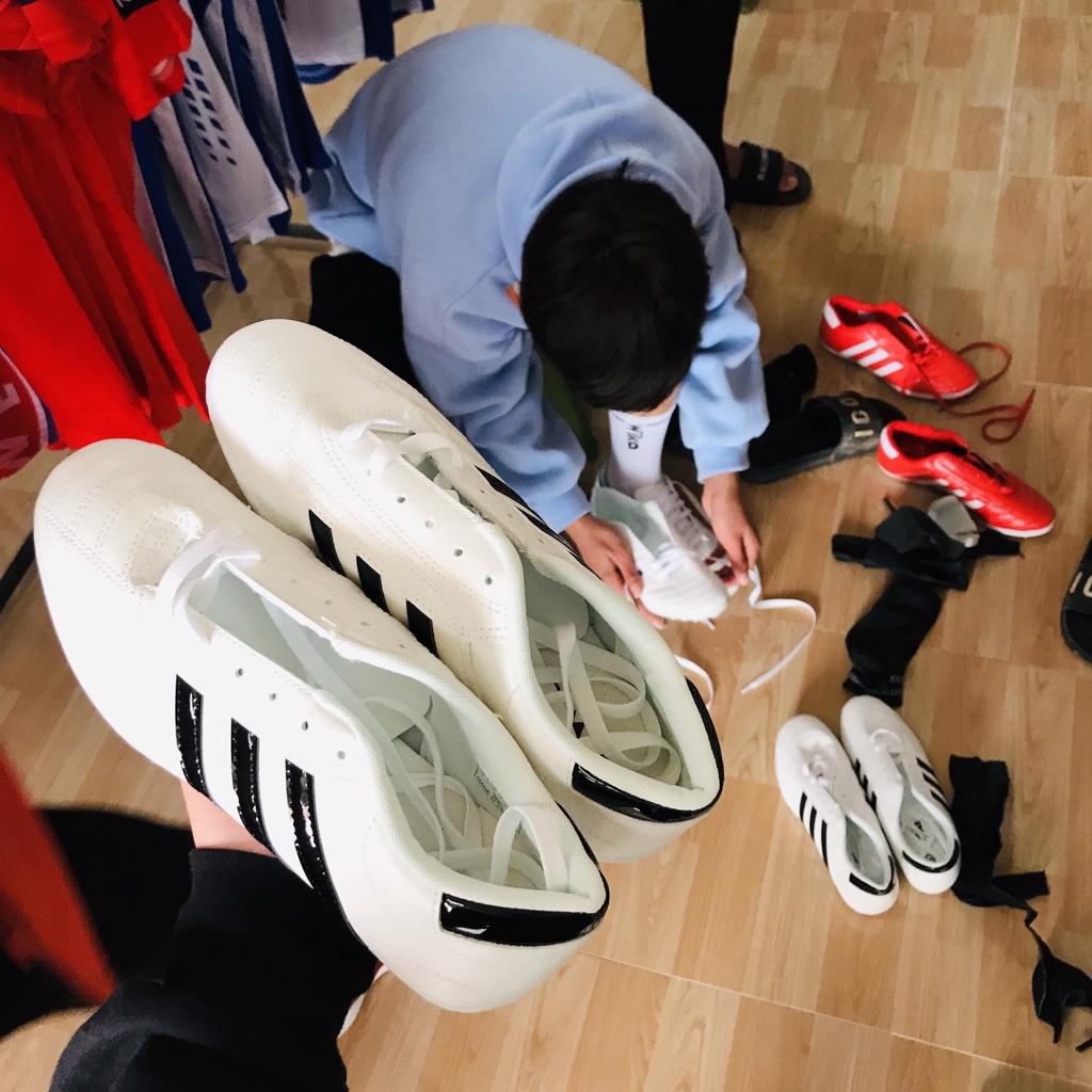 GIẦY ĐÁ BÓNG PHỦI 3 SỌC CT3 1 trong những huyền thoại phủi , có đế TF , cổ thấp , thích hợp đá bóng trên mặt sân cỏ nhân tạo Nhưng cũng có thể