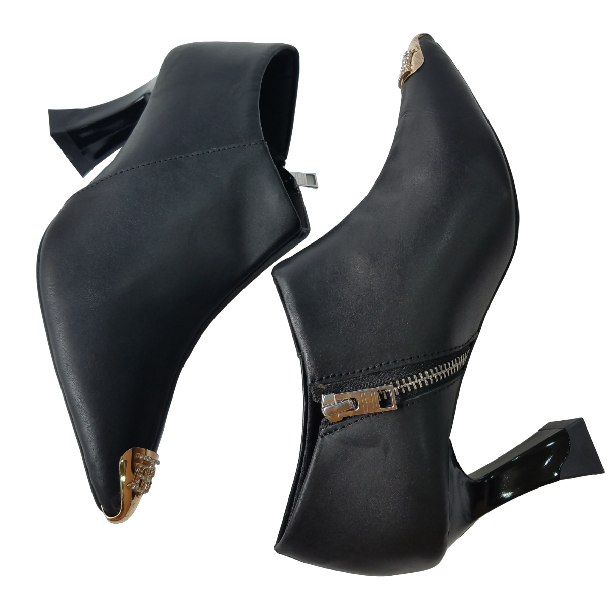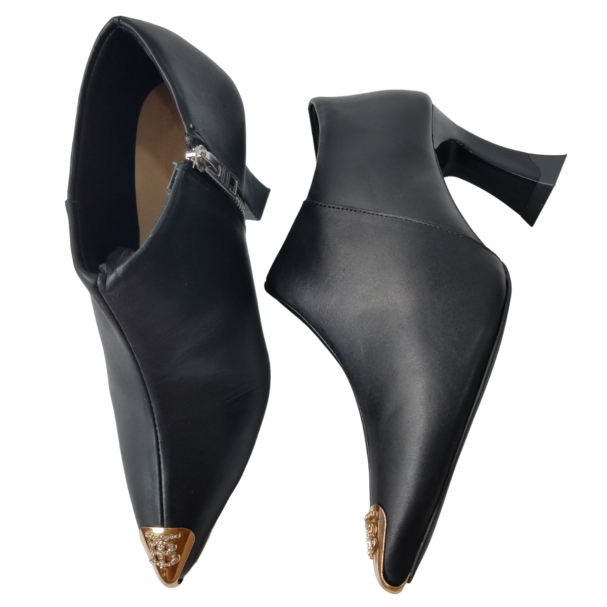 Giày Cao Gót 3Cm Giày Gót Vuông Da Bò Thật Cao Cấp Gót Cao 3cm Evelynv 3P5016 (Đen)