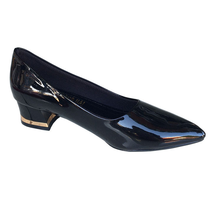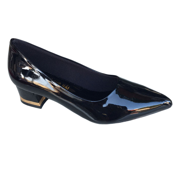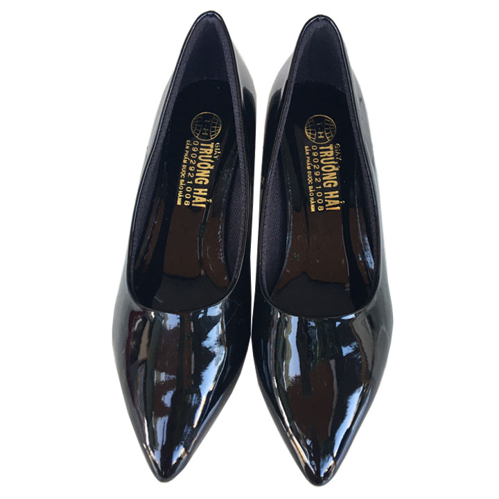 Giày cao gót da bóng đen 3cm Trường Hải