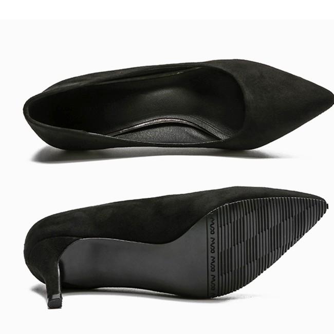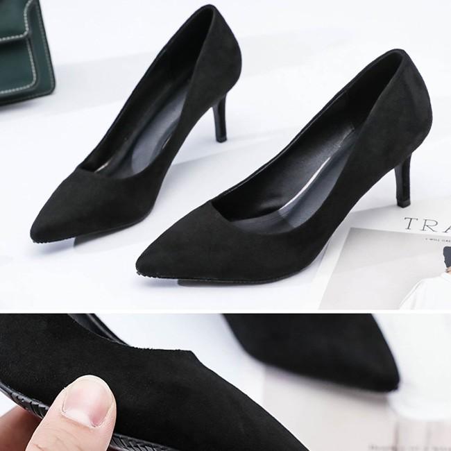 MÔ TẢ SẢN PHẨM: Giày nữ cao gót mũi nhọn, da lộn ROSATA RO694 -7p- Đen - HÀNG VIỆT NAM - BKSTORE Giày được làm từ chất liệu da PU cao cấp, bền và dễ