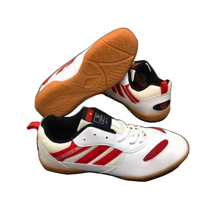 Giày Cầu Lông Mới Nhất Đa Năng Trắng Sọc Đỏ Kiểu dáng thể thao, mạnh mẽ,phù hợp với các bạn trong độ tuổi 12-35 - Đế cao su bền chắc, có độ bám cao. -