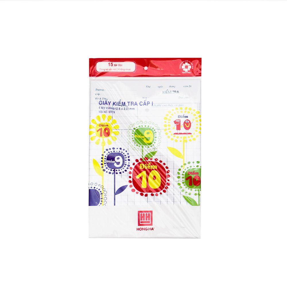 Giấy kiểm tra cấp 1 Hồng Hà 4 ô li vuông 15.000 đ/ 1 tập 15 tờ đôi