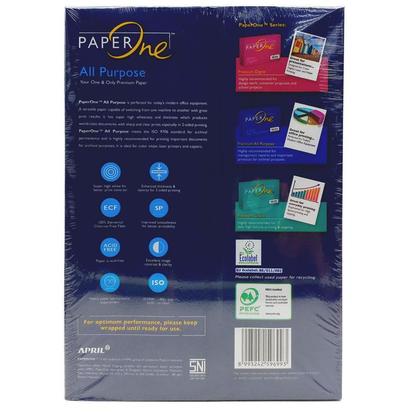 Giấy Paper One định lượng 80A4, là loại giấy có độ trắng cao, mặt giấy láng và rất mịn in hai mặt mà không bị nhăn và lem mực,sắc nét cao, không bụi, khổ giấy