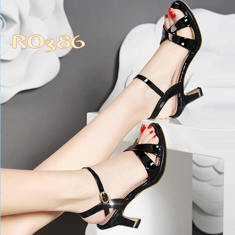 Giày sandal nữ cao gót 7 phân hai màu đen da hàng hiệu rosata ro312
