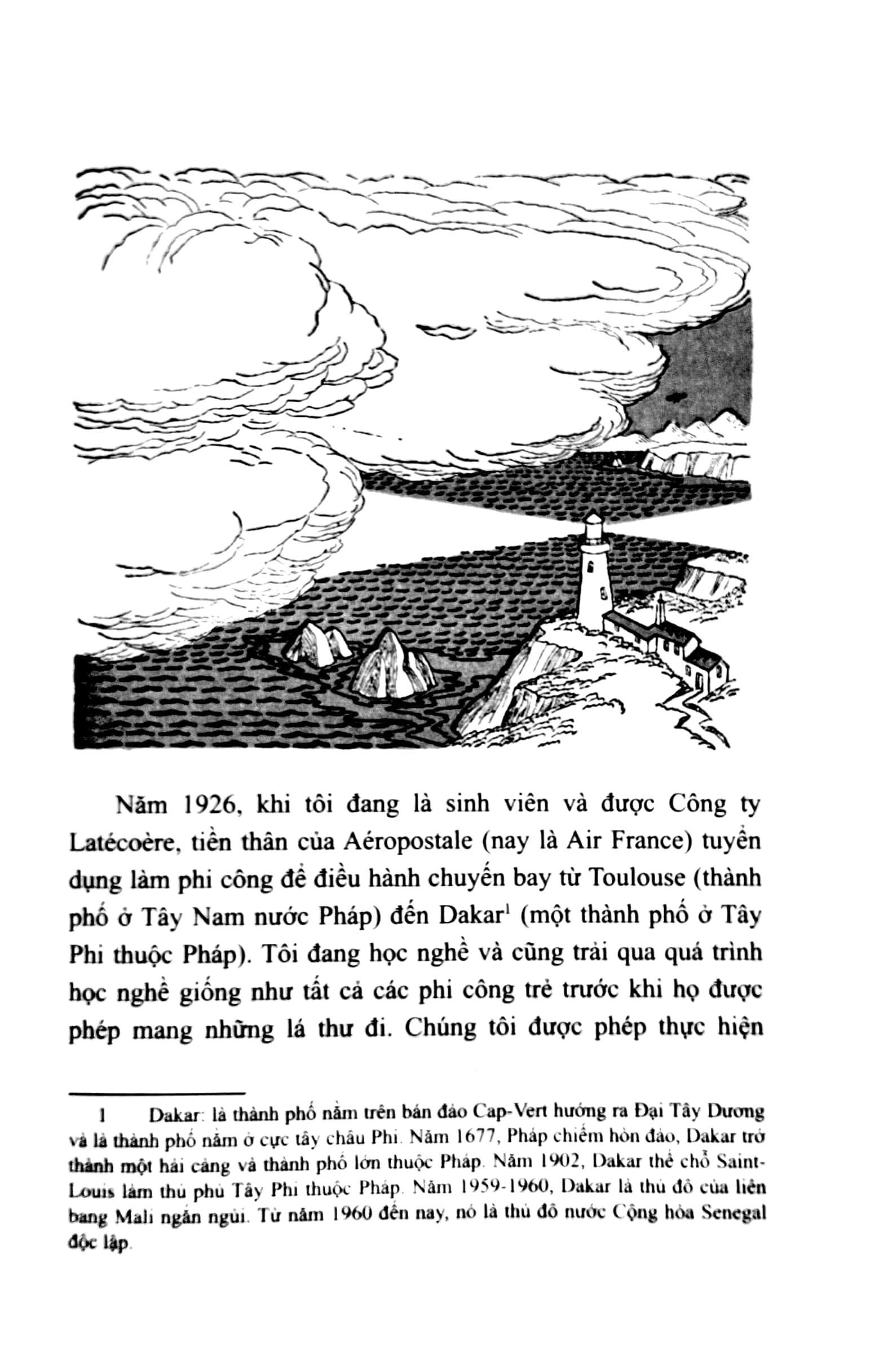 Với lối kể chuyện phóng khoáng, ngôn ngữ khoa học kết hợp chất trữ tình của văn xuôi trong tinh thần của một triết gia, tác phẩm của nhà văn phi công Pháp (1900- 1944) không chỉ dừng lại ở những cuộc phiêu lưu thú vị đầy nguy hiểm của những người phi công thực hiện nhiệm vụ trên những chuyến bay mà còn cho thấy quan điểm của ông về một con người biết sống trọn vẹn, sự cống hiến của những cá nhân anh hùng cho các giá trị nhân loại phổ quát, sẽ cho bạn đáp án đúng về hướng đi trên con đường cuộc đời với vô số ngả rẽ và cách để chúng ta tìm thấy hạnh phúc, tự do.