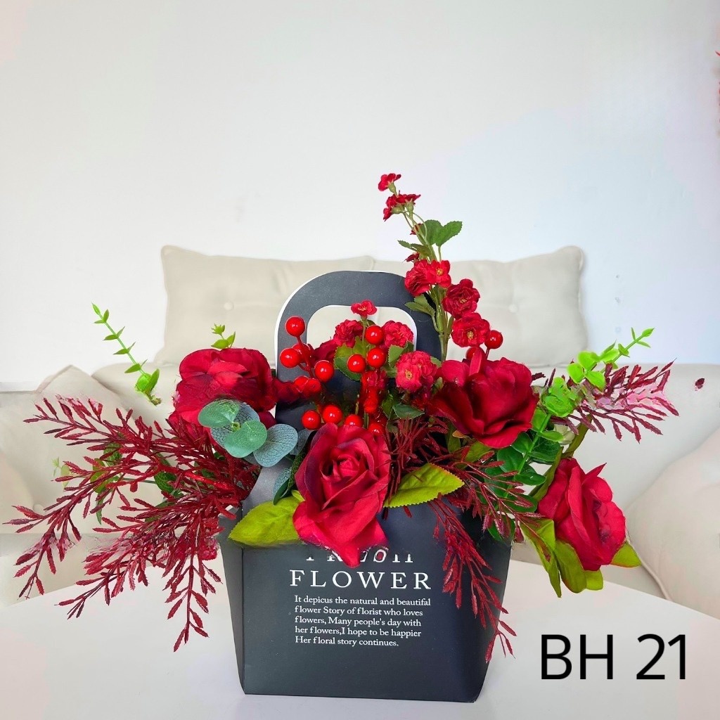 Chậu cây trang trí để bàn kèm giỏ y hình các loại - Cao 35cm đến 48cm - Cây giả, hoa lụa Decor trang trí nhà cửa. ƯU ĐIỂM SẢN PHẨM : - Lựa chọn