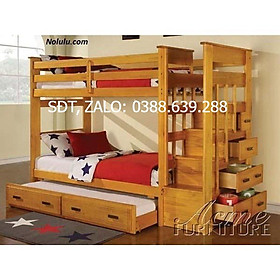 Giường 3 tầng: Giường tầng gỗ tự nhiên 1mX2m + Giường phụ + Tủ cầu thang | noithatlamson