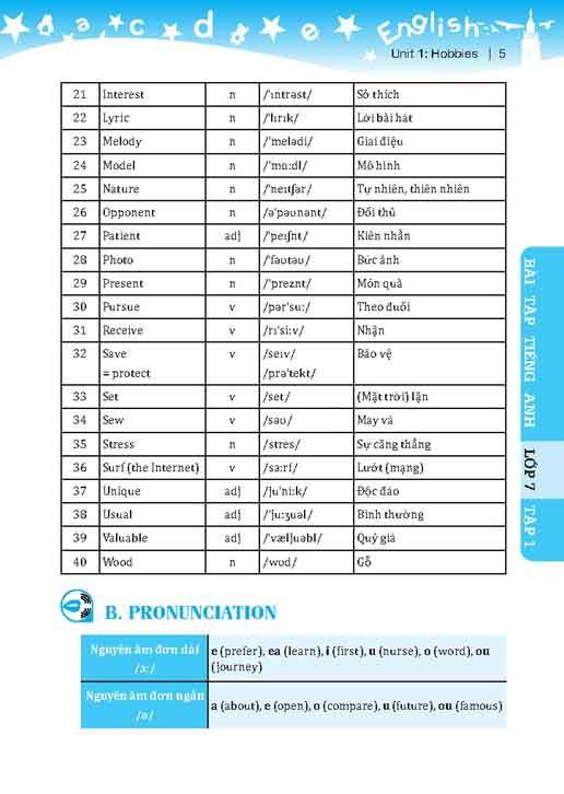 SBT Tiếng Anh lớp 7 - Unit 1: Hobbies - Pronunciation - trang 3 - Global success - Kết nối tri thức