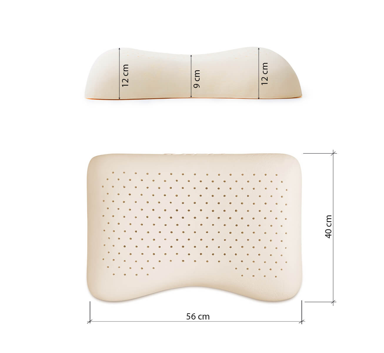 CẤU TẠO - Kích thước: 12x40x60cm - Thành phẩn 100% cao su thiên nhiên - Gối được thiết kế hình bầu dục truyền thống, thoáng mát với cấu trúc hàng nghìn lỗ thông hơi trên bề
