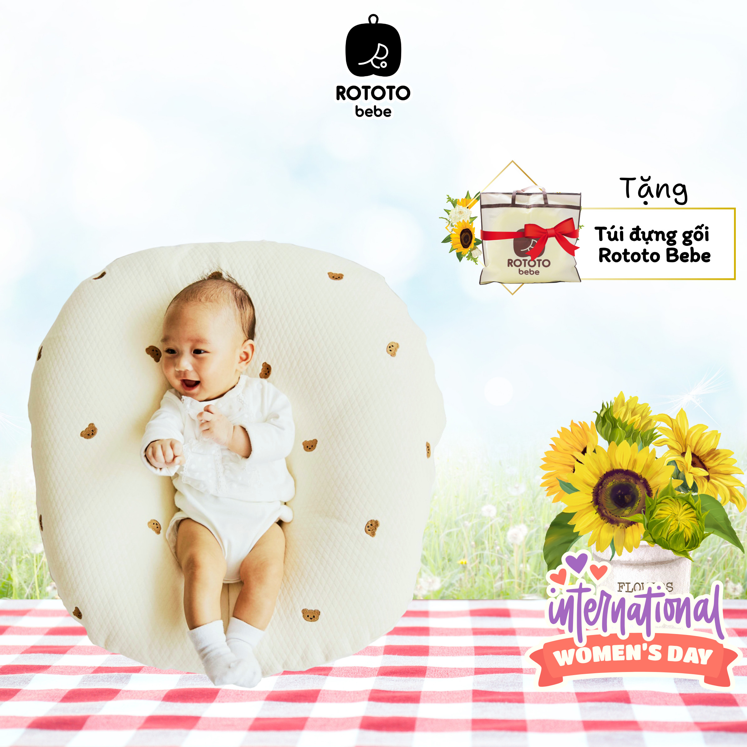 Rototo Bebe là thương hiệu vô cùng nổi tiếng tại Hàn Quốc với nhiều sản phẩm dành cho bé vô cùng chất lượng, trong đó có gối chống trào ngược Rototo Bebe, giúp khắc phục tối đa tình trạng trào ngược dạ dày ở trẻ sơ sinh, giúp cho mẹ không cần lo lắng về việc bé bị trớ khi uống sữa. Ngoài công dụng chống trào ngược, gối Rototo Bebe còn có thể làm đệm ngủ, đệm nằm chơi, ngồi chơi cho bé. Ruột gối được làm bằng chất Liệu Polyester cao ấp mang lại cảm giác êm ái, đô nghiêng của gối là 30 độ, giống với tư thế của bé khi nằm trong bụng mẹ nên sẽ mang lại cho bé cảm giác thoải mái dễ chịu khi nằm ở trên gối. Chất liệu vỏ gối Ripple nhăn thoáng mát cao cấp là mẫu vải được yêu thích nhất hiện nay, thoáng mát và phân tán mồ hôi rất tốt, vải được luộc khử trùng và nhuộm bằng nguyên liệu hữu cơ nên không làm ảnh hưởng đến làn da nhạy cảm của bé sơ sinh. Vỏ gối Cotton cao cấp là một trong những mãu mới nhất của Rototo Bebe, vỏ gối mang lại cảm giác thoải mái cho bé khi nằm.