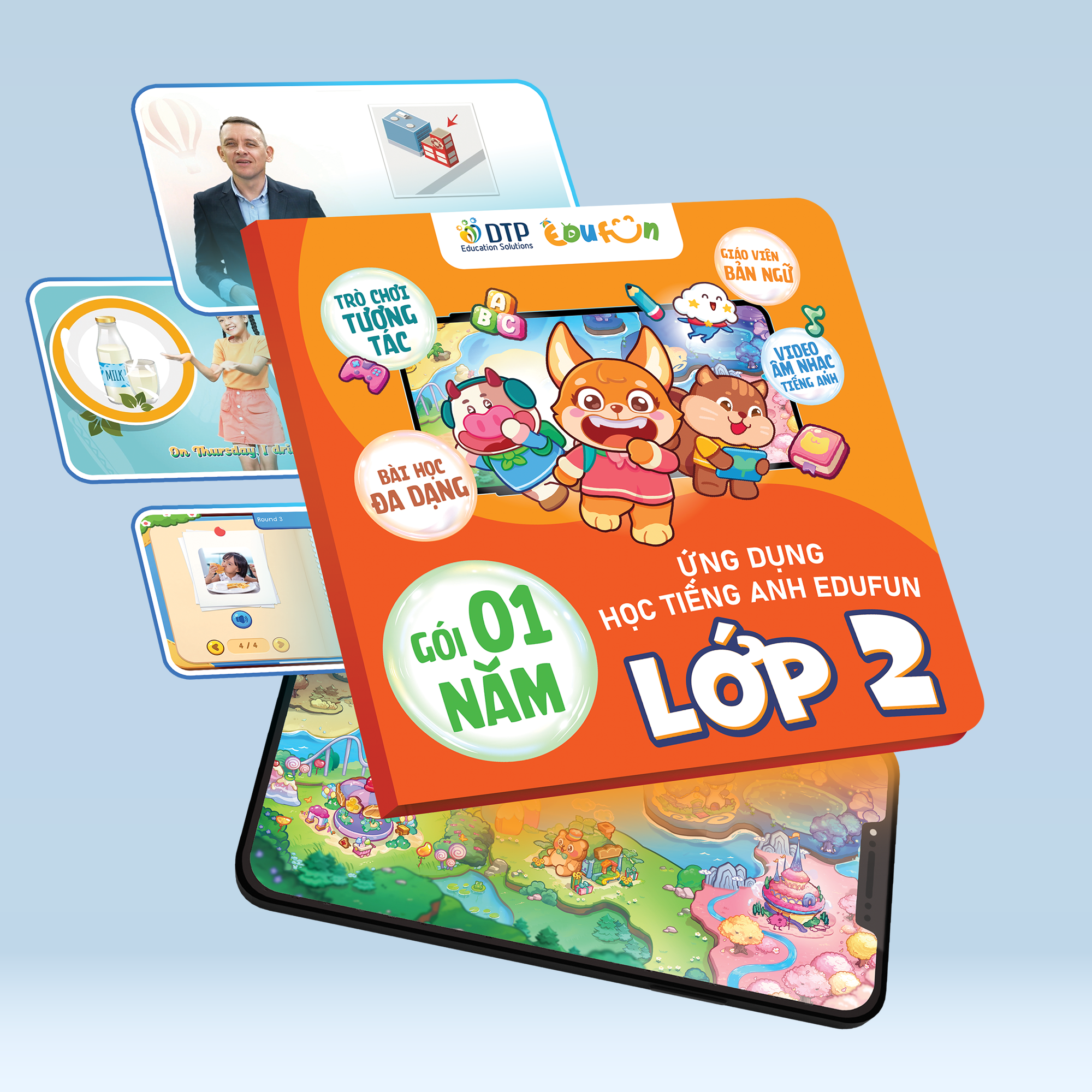 Trọn bộ sản phẩm gồm: - 1 thẻ học tiếng Anh qua ứng dụng Edufun (thời hạn 1 năm) - Trọn bộ quà tặng năm học mới gồm 4 sản phẩm: + Tiếng Anh 1