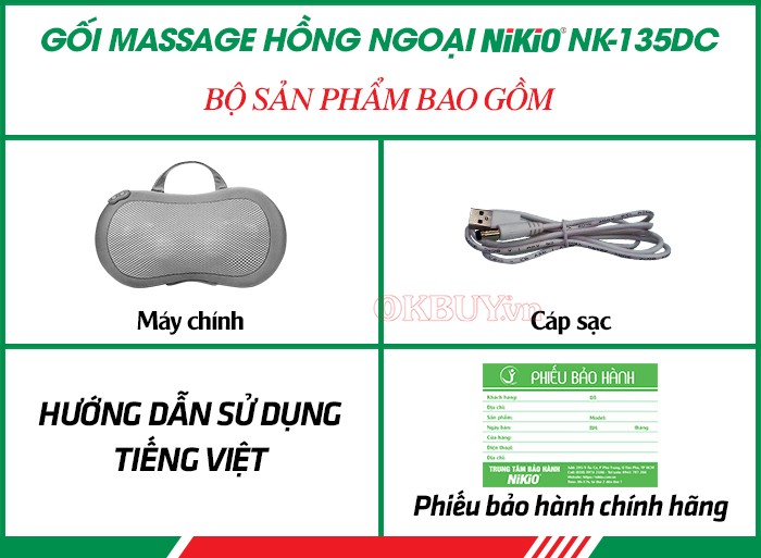 Thông số kỹ thuật sản phẩm gối massage hồng ngoại Nikio NK-135DC: