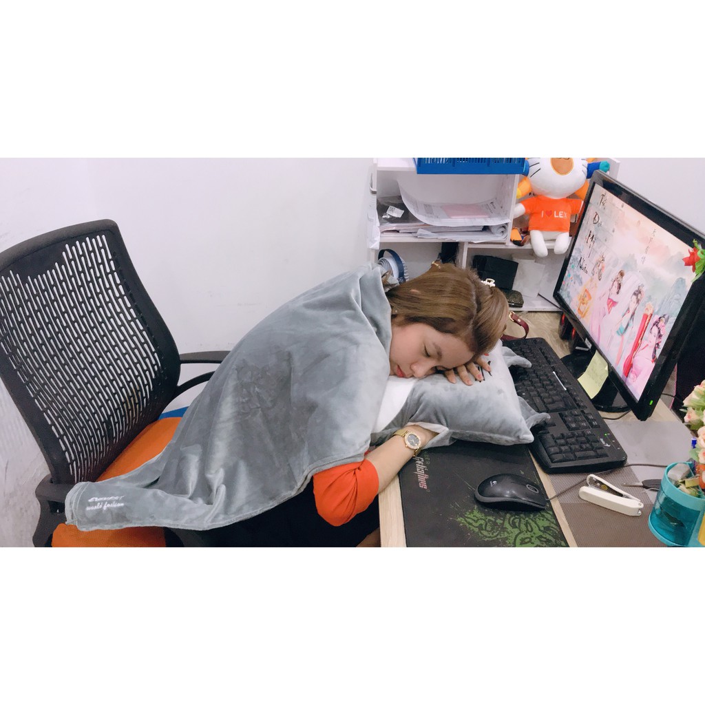 - Sản phẩm 3 trong 1 vừa có thể gối đầu làm chăn đắp, có thể giữ ấm cho đôi tay, lại có thể tựa lưng.