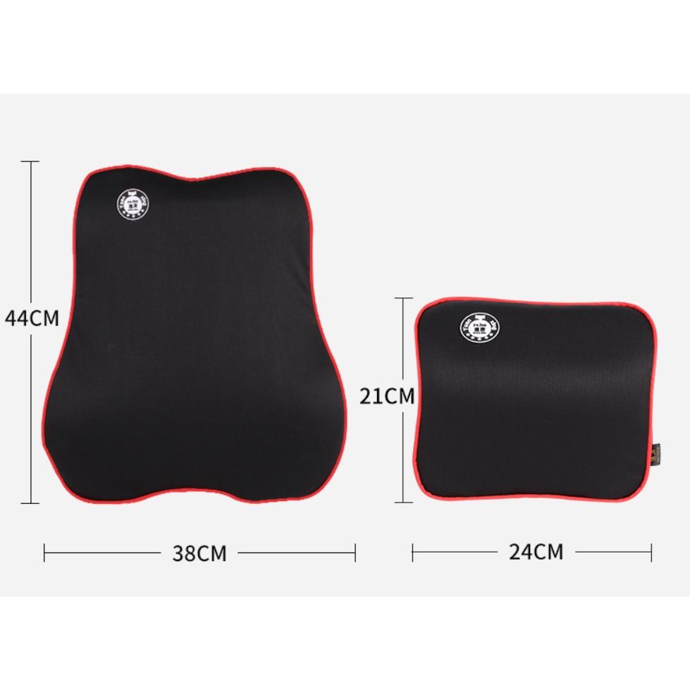 - Bộ gối Tựa Đầu và tựa lưng được thiết kế có phần giữa đồ dày vừa phải, hai bên tai giúp nâng đỡ giữ ổn định phần đầu, giúp không bị mỏi cổ, hai bên tựa ở hai bên hông giúp giữ lưng được ổn định.