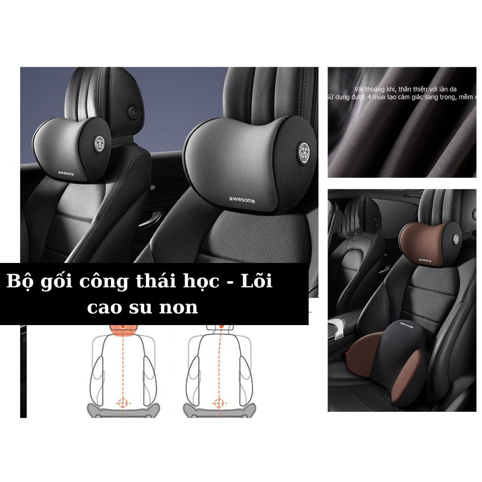 Gối tựa ô tô awesome, lõi cao su non vỏ vải co giãn, gối đầu ô tô, tựa lưng ô tô