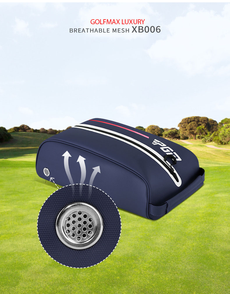 Túi đựng giày golf PGM-XB006 được làm bằng chất liệu vải Nylon cao cấp chống thấm nước.Thiết kế lưới thoáng khí bên hông túi có khả năng chống mùi khó chịu và thoát khí tốt hơn. 1. Thông tin sản phẩm: - Thương hiệu: PGM - Túi đựng giày golf nam nữ : XB006 - Màu sắc: Xanh, Đỏ, Trắng - Giới tính: Nữ - Kích thước: 32.5cm x 22cm x 13cm - Trọng lượng khoảng:0.2KG 2.Thương hiệu PGM – PGM là hãng sản xuất chuyên về dụng cụ Golf cung cấp khắp các nước Bắc Mỹ, Trung Á và Đông Nam Á –PGM là thương hiệu lớn tại Trung Quốc. với tiêu chuẩn sản xuất chất lượng châu âu. Và cũng