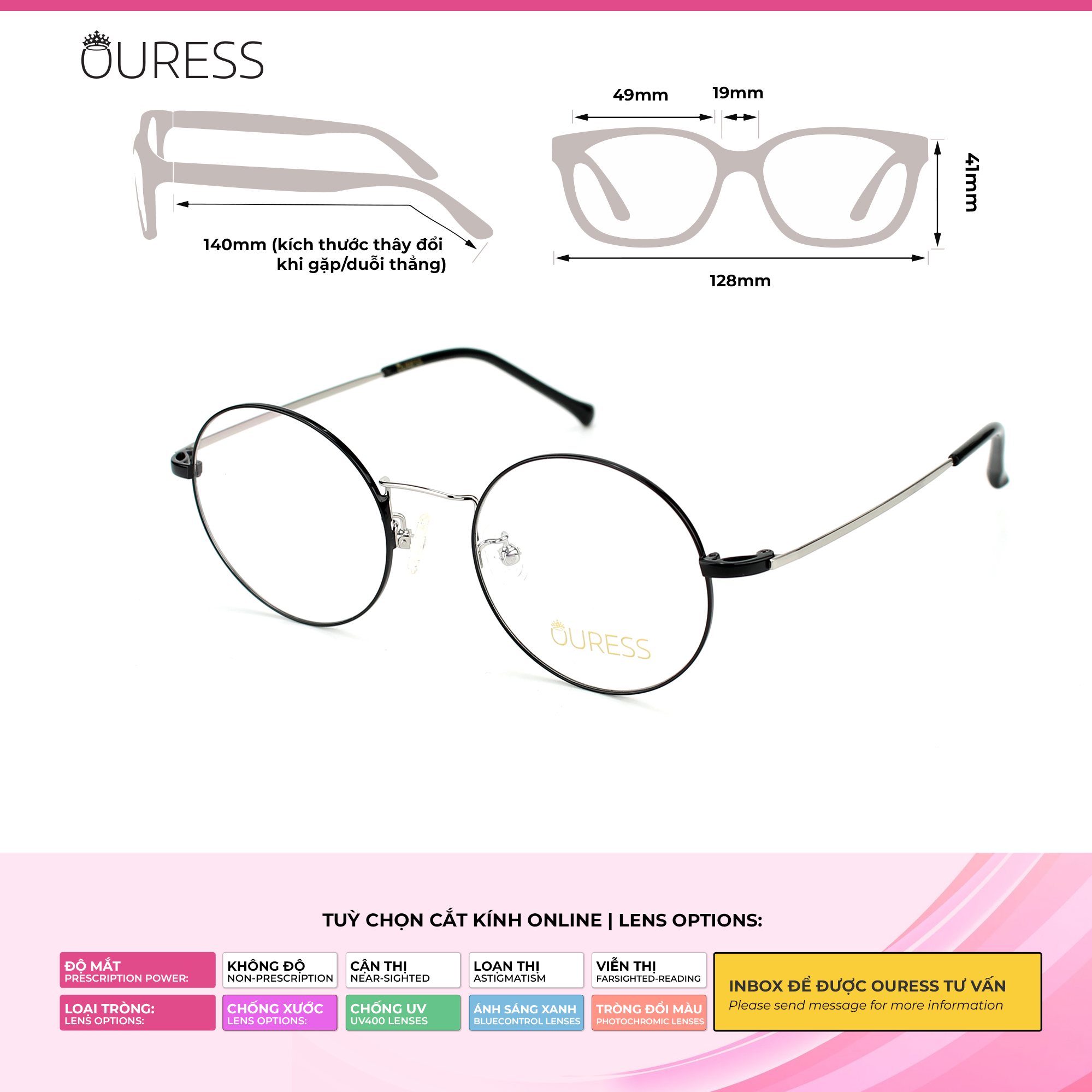 Cung cấp PD (khoảng cách đồng tử) hoặc hình chụp cận cảnh gương mặt qua Tin nhắn cho Ouress