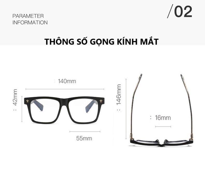 MÔ TẢ CHI TIẾT SẢN PHẨM: - Form kính : chữ nhật, mua về có thể thay tròng theo sở thích như cận, loạn, thoải mái luôn ạ - Màu sắc: SHOP GỬI MÀU ĐEN