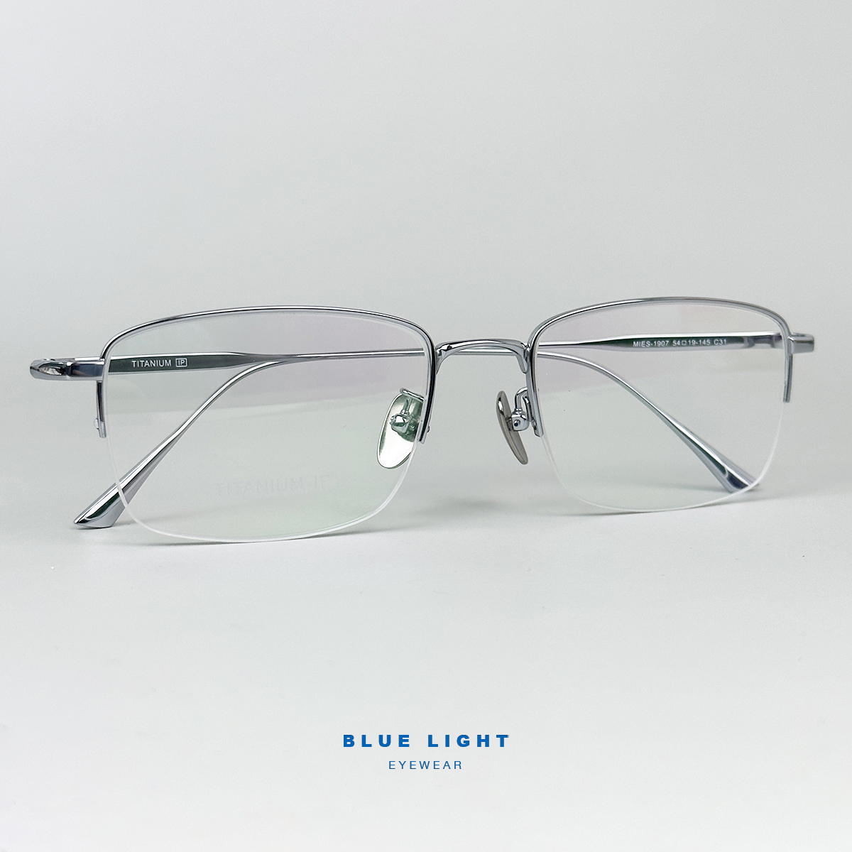 ✨Gọng Kính Cận, Kính Giả Cận Nam Nữ BLUE LIGHT TITANIUM Cao Cấp Siêu Nhẹ, Mắt Vuông Nửa Gọng, Màu Bạc, Đen