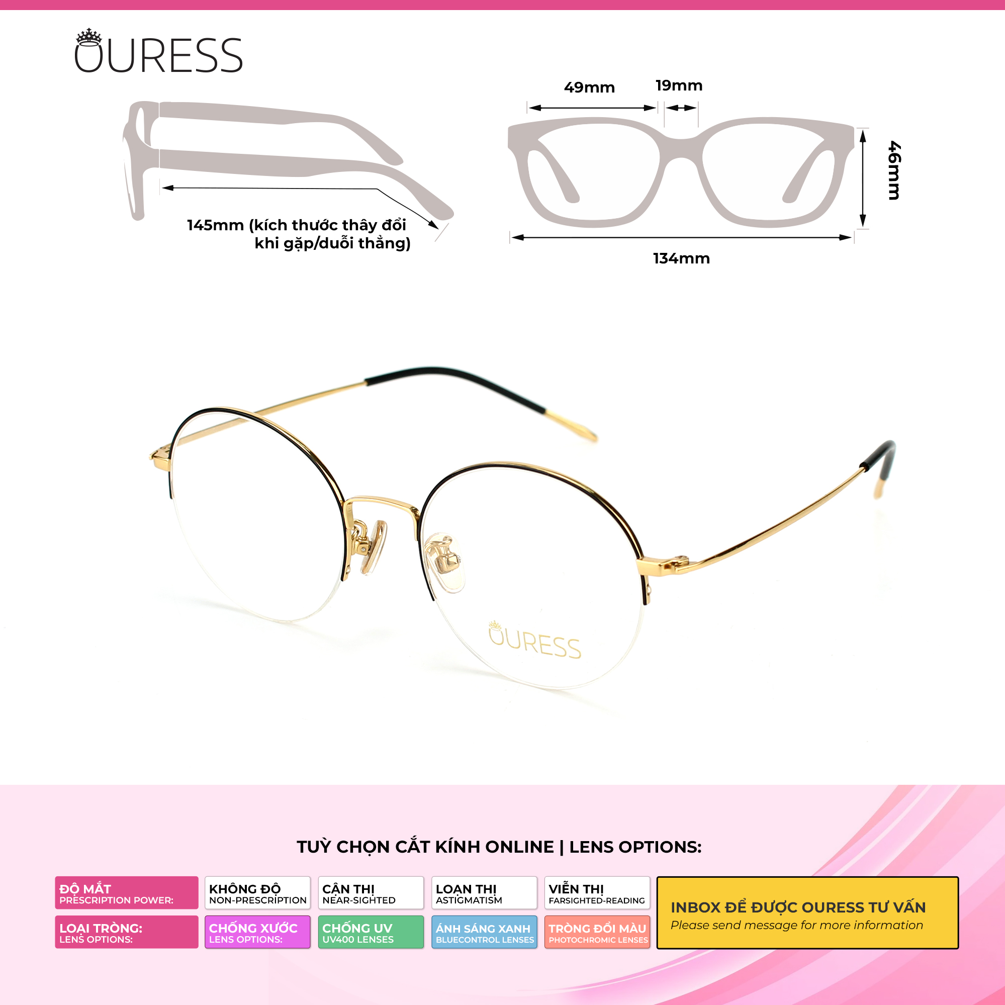 ✨Gọng kính cận titan 80036 nửa khung thời trang mắt kính OURESS nam nữ siêu nhẹ siêu bền
