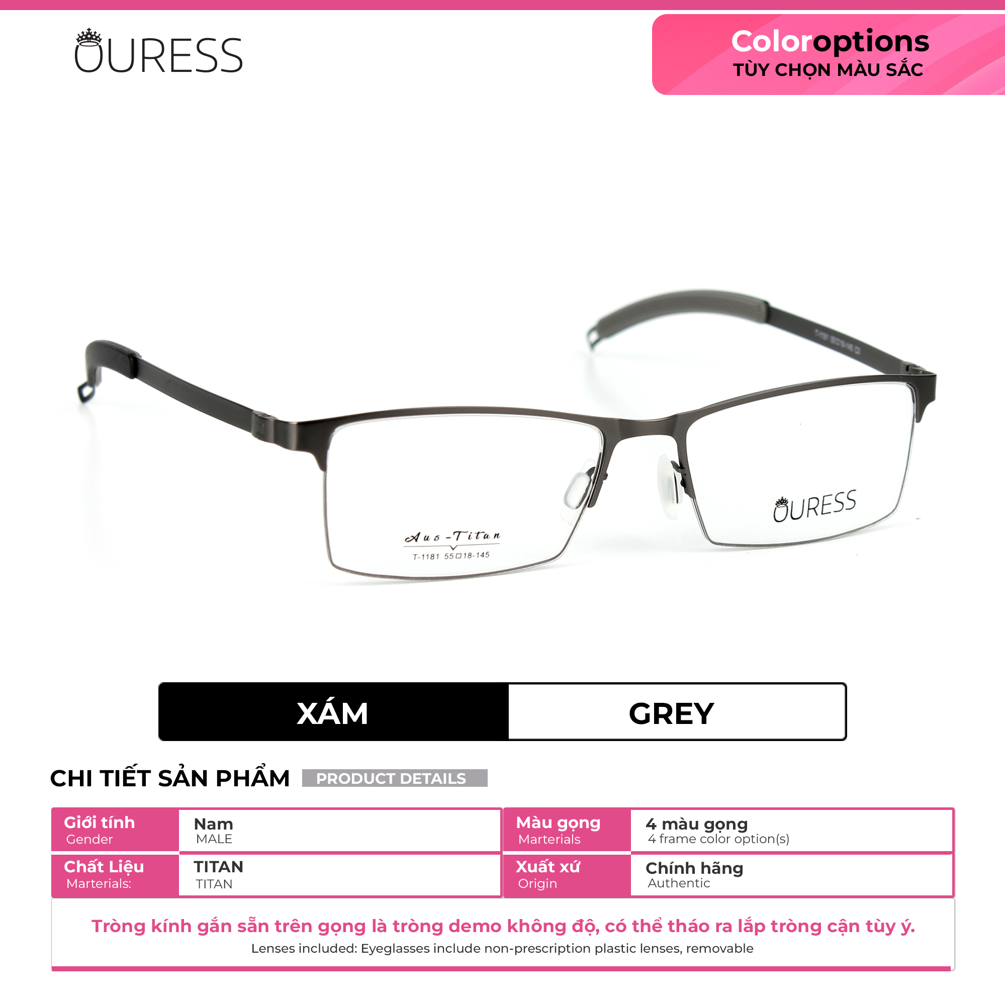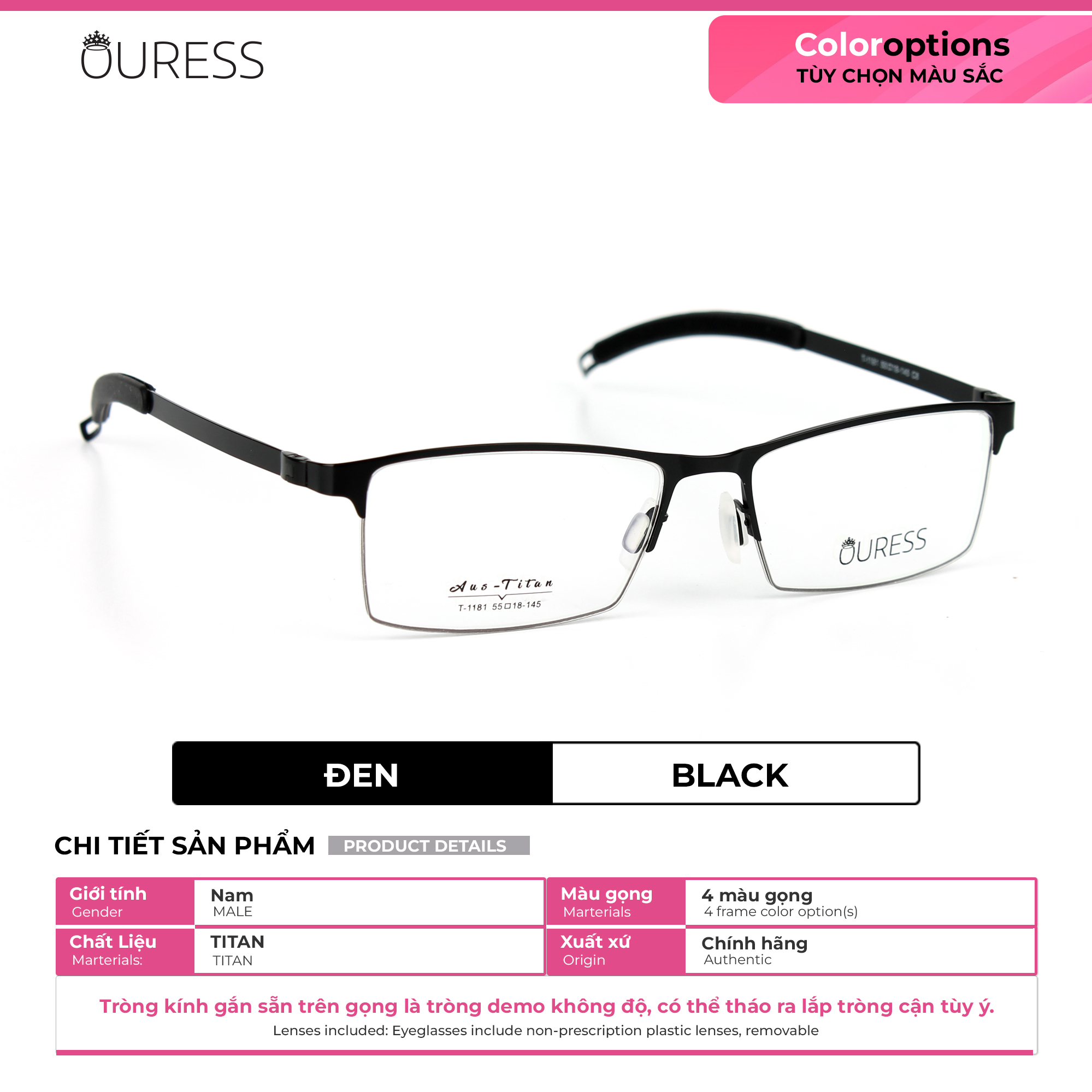 Lưu ý: Quý khách vui lòng cung cấp đầy đủ thông tin như trên cho Ouress trong vòng 02 ngày kể từ ngày đặt hàng. Hết thời hạn mà không nhận được thông tin, Ouress xin phép được gửi mặc định tròng 0 độ để đảm bảo quy định giao hàng của sàn.