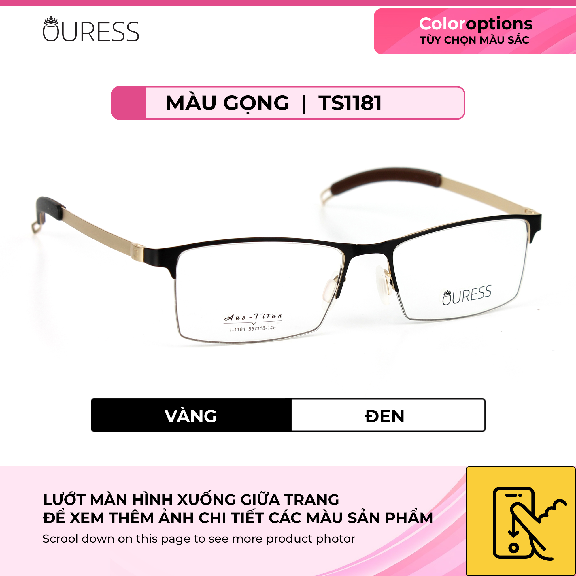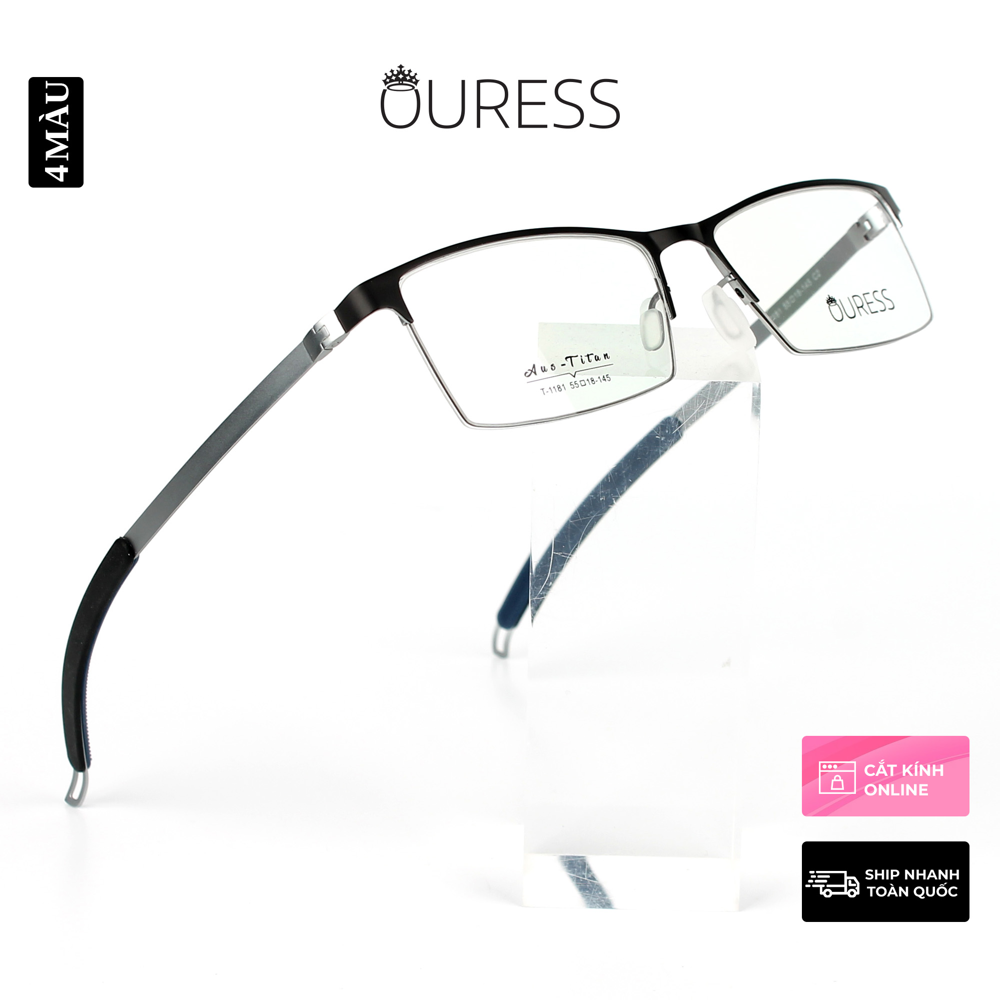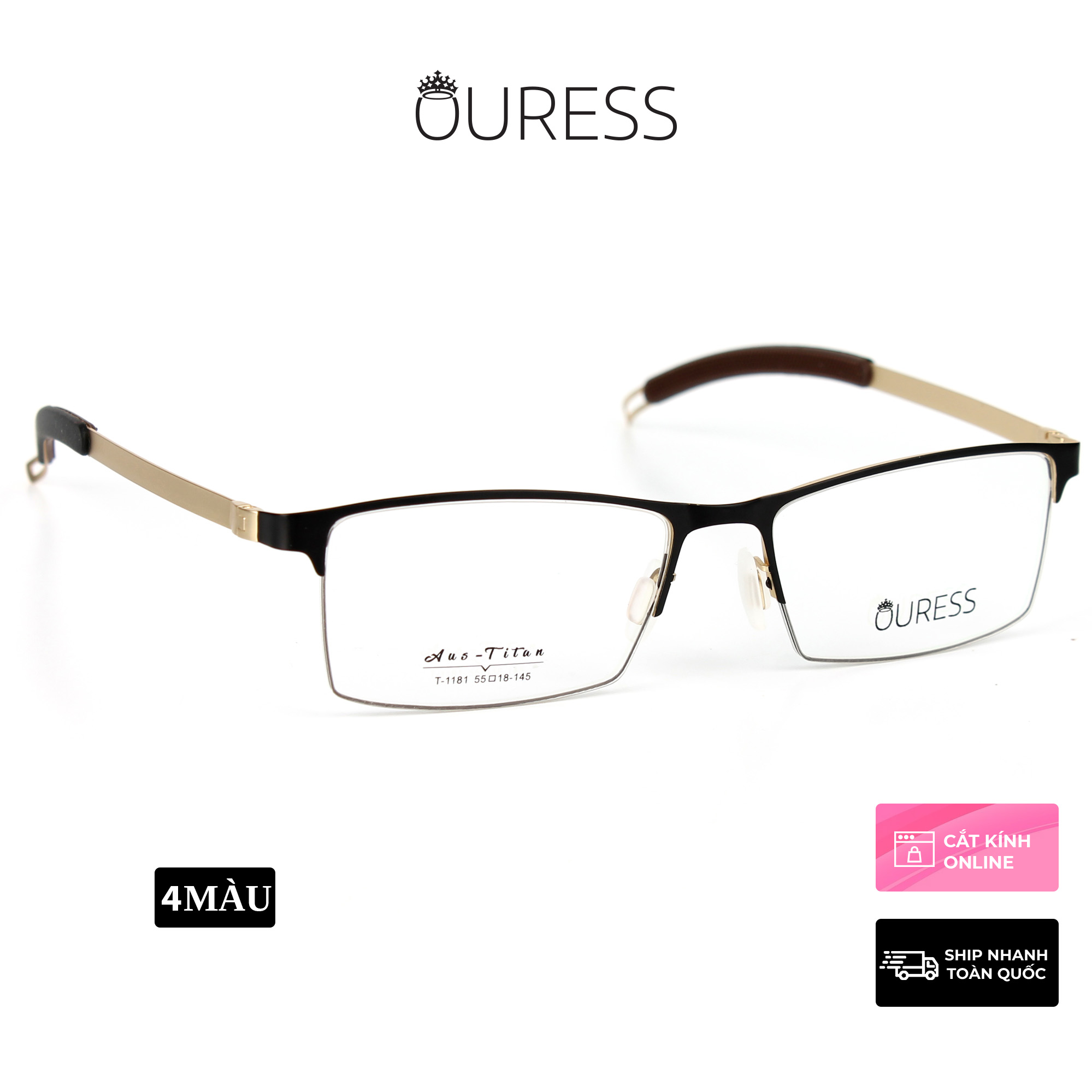 ✨Gọng kính titanium T1181 nửa khung thời trang nam cao cấp siêu nhẹ siêu bền OURESS