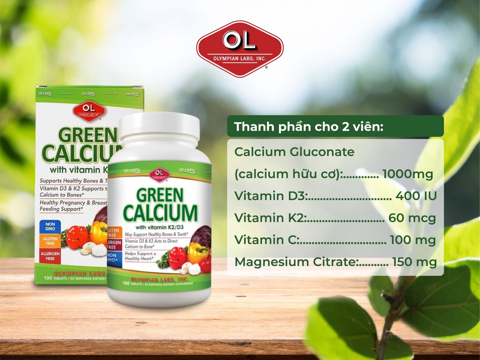 ✨Green Calcium Olympian Labs – Bổ sung canxi hữu cơ hộp 100 viên (Mỹ)