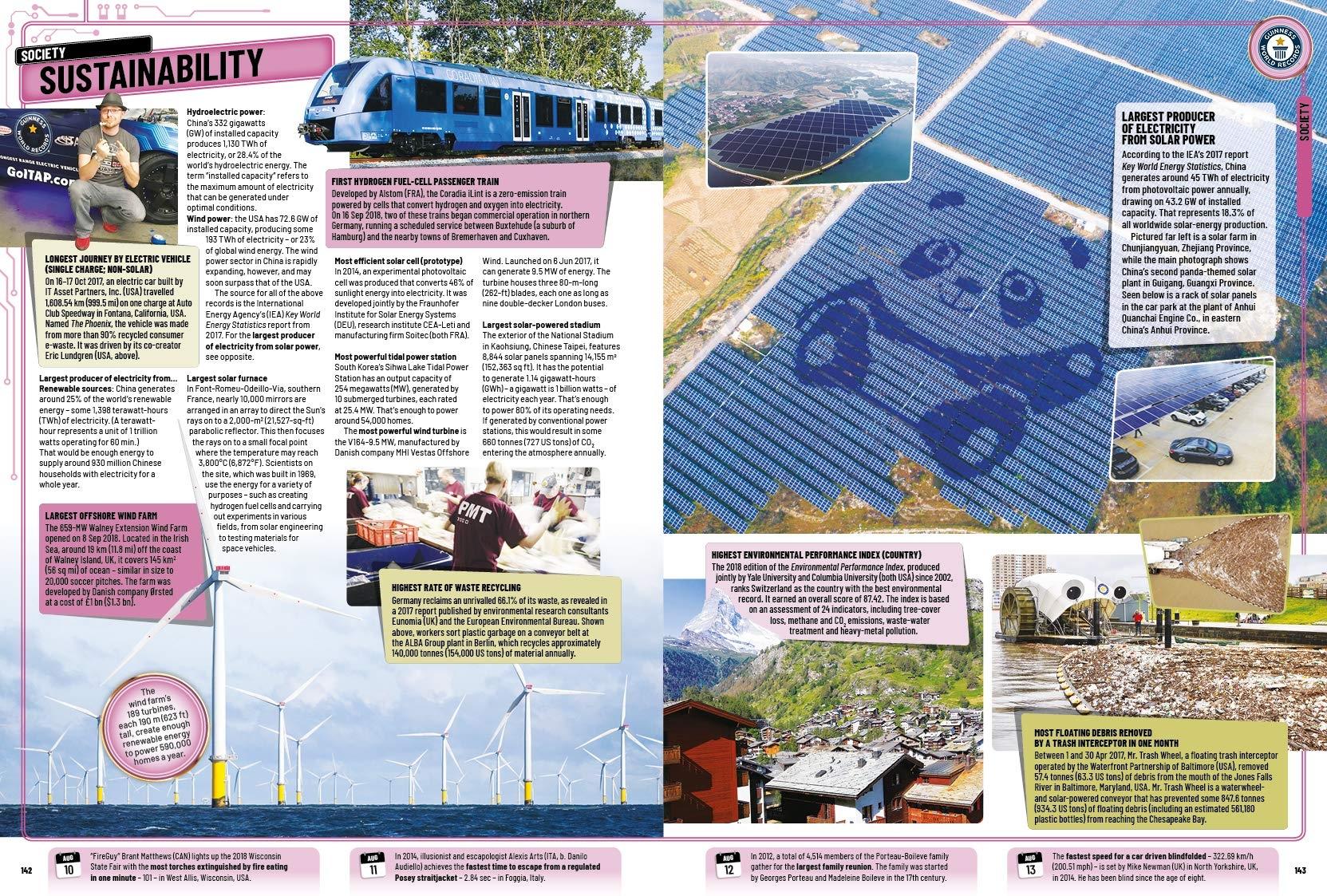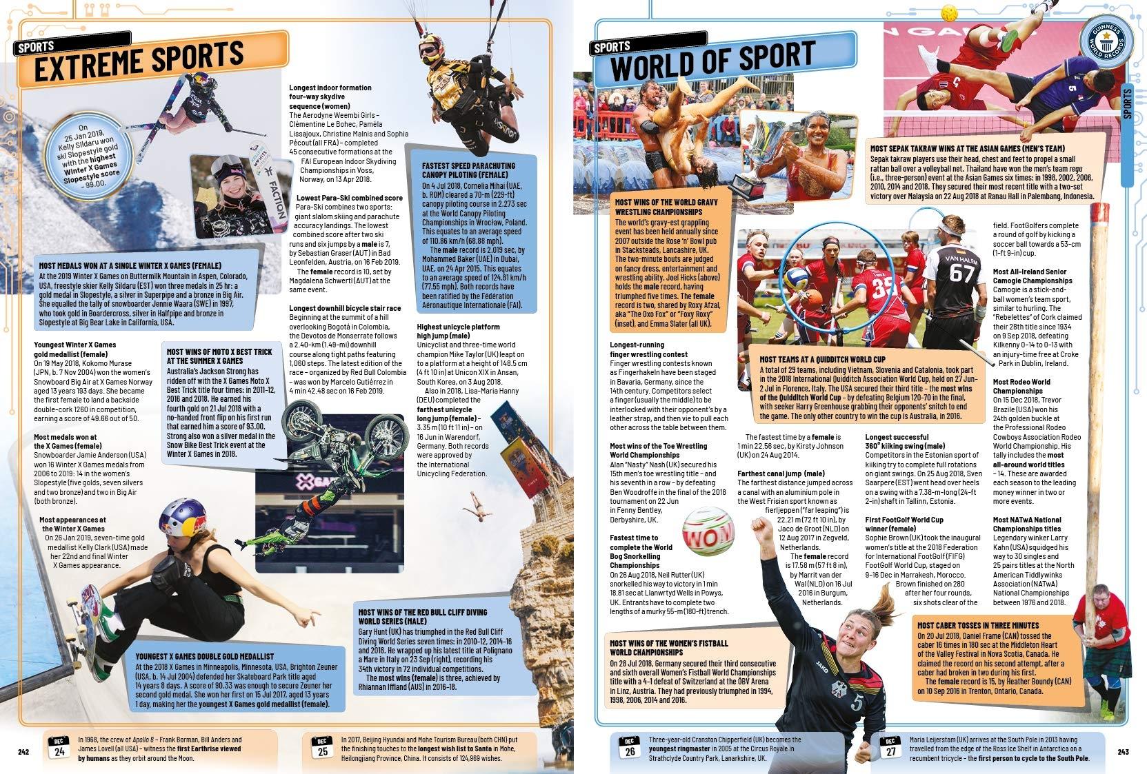 Celebrate the dawning of a new decade with the fully revised Guinness World Records 2020. To kick off the'20s, we've created an electrifying new cover and curated a record-breaking edition packaged with thousands of new, updated and classic superlatives, hundreds of never-before-seen images, and a selection of eye-opening photo-composites that put a new spin on A new decade means it's time for a fresh approach, so starting with our front cover, we've re-booted record-breaking with an all-new design. There's a new look inside, too, and thanks to our team of digital artists, we've created mind-blowing poster pages that will reveal some of our classic record holders in a whole new light. Our ever-expanding pool of international consultants and experts help us make sense of the world around us, so join us as we explore the vast spectrum of record-breaking in 11 superlative-packed chapters. As always, we're committed to bringing you record-breaking from the cutting edge of science, and this year we've produced a feature chapter on remarkable robots with the help of award-winning tech blogger Evan Ackerman. We've also been out on the road, adjudicating records at events as diverse as the UK National Pet Show, Skill Con in Las Vegas and BubbleFest in Wales. Guinness World Records is nothing without its dedicated record-breakers, so we've also selected the best of the newly approved claims from the 50,000 applications received from the public over the past 12 months. If you want to be one of those lucky few, look out for the Do Try This At Home challenges in the VIRAL SPORTS chapter - you might even make it into next year's edition!