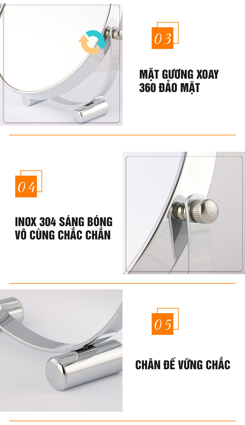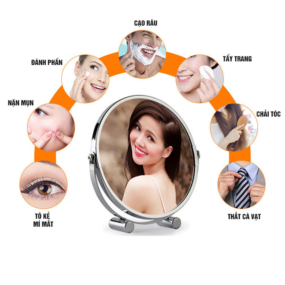 Gương trang điểm phóng đại 3 lần, xoay 360 độ, 2 mặt siêu nét, để bàn, Thép không gỉ, Size 18cm, 20cm, Minh House G31 Mô tả: Rất là khó chịu khi trang điểm, tỉa