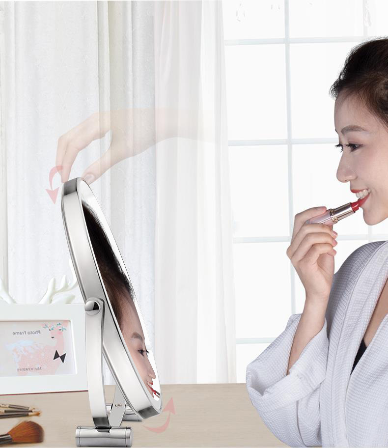Gương trang điểm để bàn LED, Crom, phóng đại zoom x3, 2 mặt xoay siêu nét Minh House Mô tả gương trang điểm để bàn Crom phóng đại zoom x3, 2 mặt xoay siêu nét
