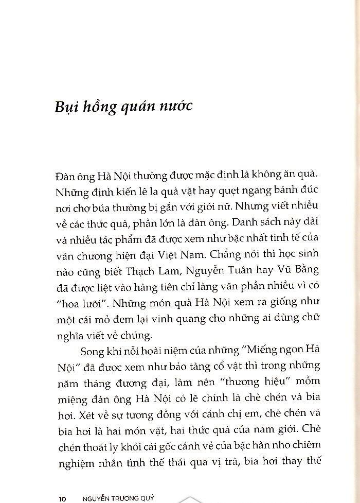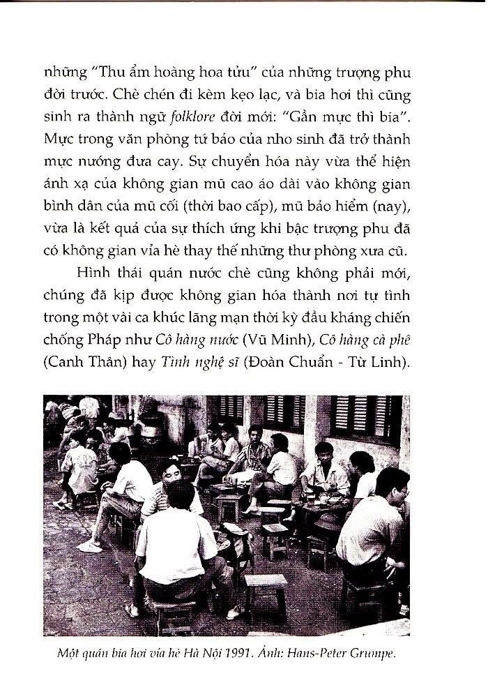 Ở Hà Nội, quán nước chè và quán bia hơi giống như một sự nối dài các không gian cộng đồng. Các địa điểm này tập trung tinh thần những giai thoại “người Bắc có lý luận”, khi người uống bia hơi và nhấp chén trà không say cồn mà say giành phần thắng trong tranh cãi. Cái dồn nén của những khát vọng không thành, những “Chí lớn chưa về bàn tay không”, tìm thấy chỗ xả ra, nhưng không đến độ nặng đô như rượu quốc lủi hay brandy. Chúng nhè nhẹ thôi, những tâm sự vặt đồng điệu với những thức quà vặt ấy.