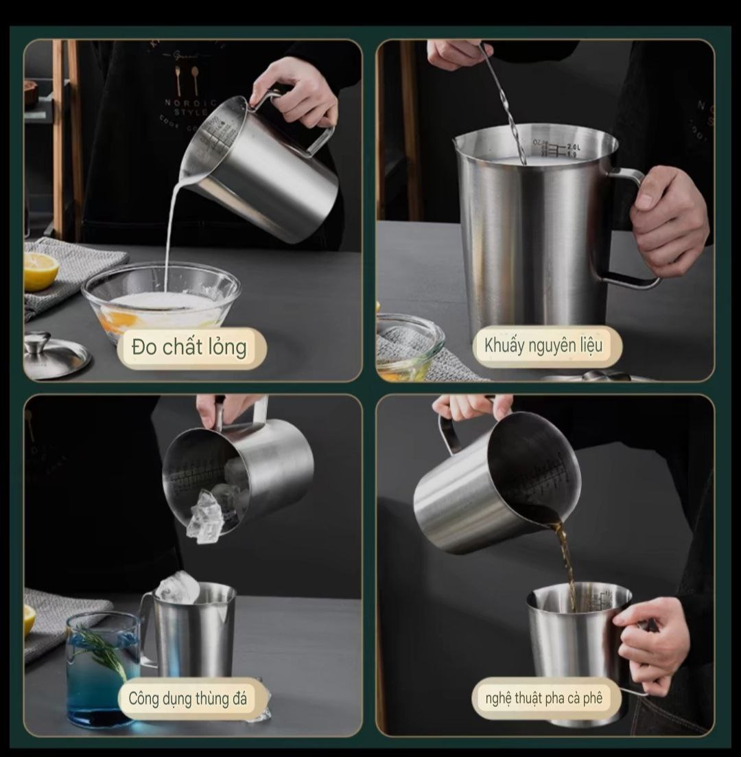 Ca Inox Định Lượng 304, Ca Đong Inox Có Vạch Chia Dung Tích 500ml/700ml/1L/1.5L/2L