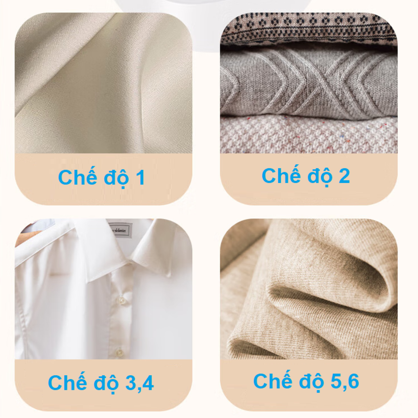 Bàn là 3 mức công suất: là được tất cả các loại vải từ tơ lụa tới vải dày như áo khoác dạ, cam kết không gây cháy Hơi nước được xả mạnh và liên