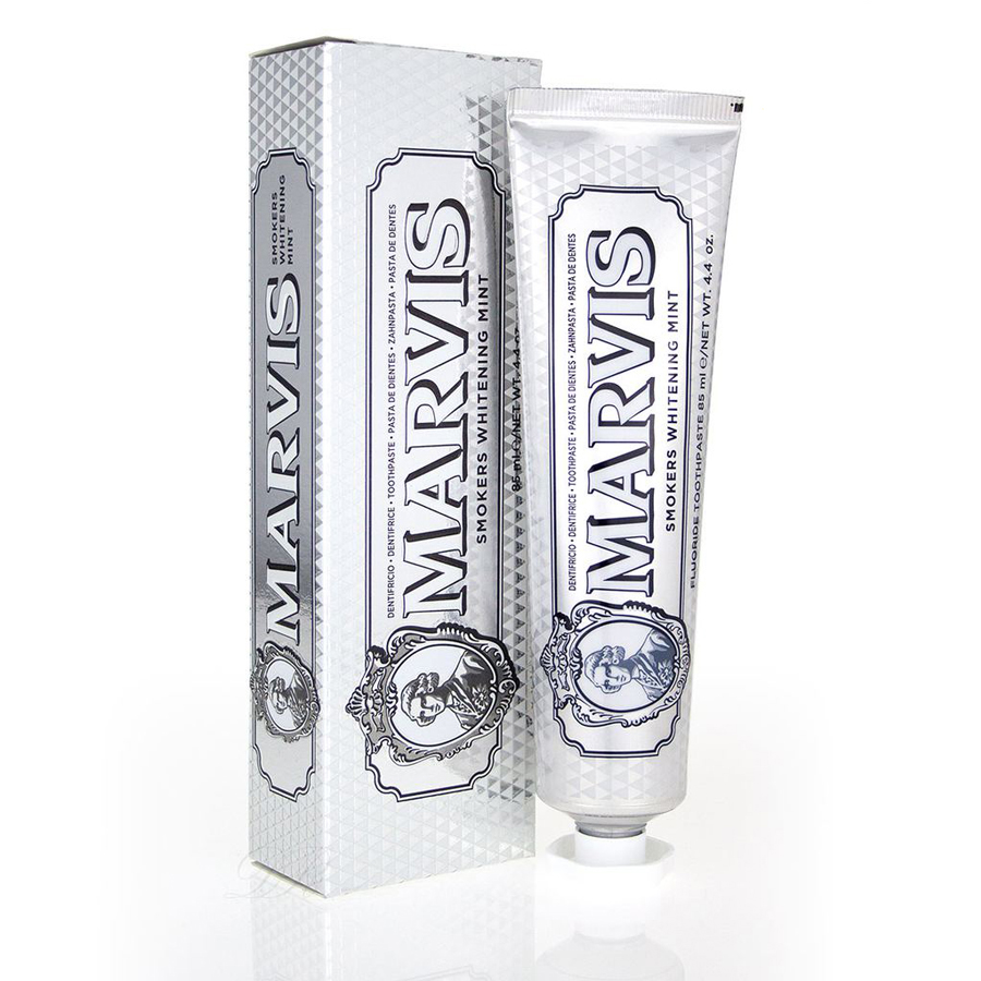 Xuất xứ : Ý Dung tích : 85ml Phiên bản: dành riêng cho người hút thuốc và uống coffee.   Kem Đánh Răng Marvis Smokers Whitening Mint 85ml được nhập khẩu từ Florence, Italy. Là một thương hiệu nha khoa nỗi tiếng được yêu thích suốt nhiều thập kỷ. Marvis làm sạch khoang miệng, giúp răng trắng dần lên từng ngày, không làm tổn thương nướu và lợi còn làm răng thêm chắc khoẻ, hương thơm vô cùng độc đáo đem lại cho bạn hơi thở luôn thơm mát.   Kem Đánh Răng Marvis Smokers Whitening Mint 85ml sở hữu công thức Plasdone giúp loại bỏ các bẩn cứng đầu bám trên bề mặt răng, mà không gây kích ứng hoặc ăn mòn quá mức men răng. Hương thơm bạc hà đậm đặc mang lại cho bạn cảm giác thơm tho, tươi mát, đặc biệt yêu thích với người thường xuyên sử dụng: cà phê, trà,   CÔNG DỤNG: Mang lại hơi thở thơm mát, tránh các vết ố vàng trên răng khi sử dụng: cà phê, trà và Nhẹ nhàng lấy đi những mảng bám trong từng kẽ răng , làm sạch khoang miệng. Làm răng trắng sáng lên từng ngày mà không hề làm tổn thương lợi và nướu. Giúp hệ răng miệng luôn được khỏe mạnh, ngăn ngừa nguy cơ sâu răng và các vấn đề bất thường về răng miệng. Mang đến cho bạn hơi thở thơm tho, tươi mát, giải quyết vấn đề hôi miệng để bạn có thể tự tin tỏa sáng cả ngày dài. Mùi hương: hương bạc hà tự nhiên tươi mát, chuyên làm trắng răng, hương thơm đậm đà.   Thành phần : Glycerin, Hydrated Silica, Aqua, Tetrapotassium Pyrophosphate, PEG-32, Sodium Lauryl Sulfate, Aroma, Cellulose Gum, , Titanium Dioxide, Sodium Monofluorophosphate, Sodium Saccharin, Phenoxyethanol, Methylparaben, Ethylparaben, Benzyl Alcohol, Limonene.